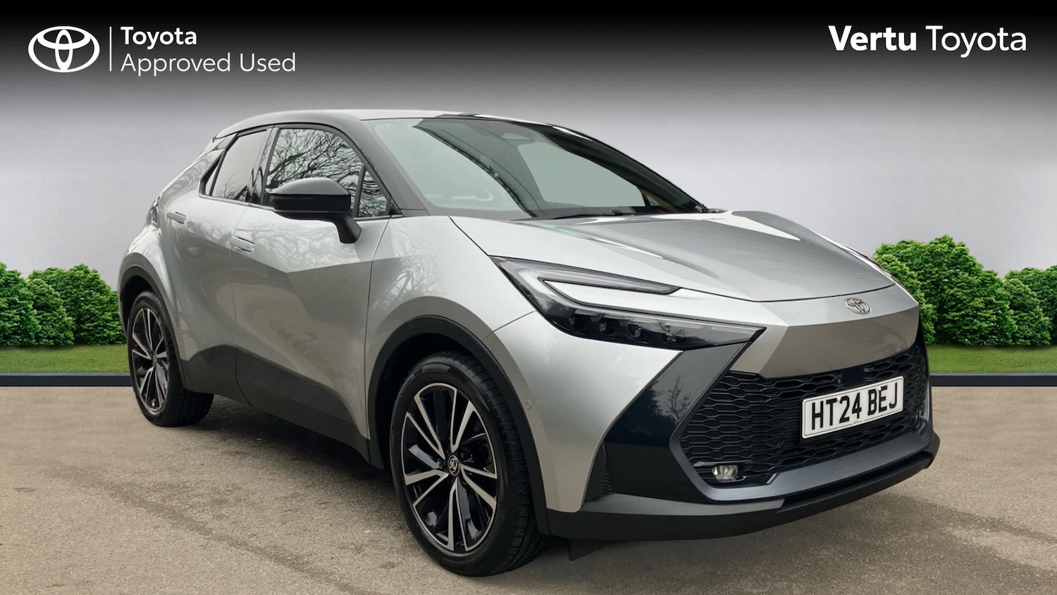 Rotherham0 Previous Owners, 0, Franchise Approved, Bold Design. Intelligent Power. Effortless Confidence.Toyota CHR Excel 2.0L Plugin Hybrid in Silver Metallic BitoneThe Toyota CHR Excel 2.0L Plugin Hybrid combines striking design with advanced electrified performance. Finished in elegant Silver Metallic Bitone, this refined SUVcoup delivers confident styling, premium comfort, and intelligent technology.The latestgeneration CHR stands out with its sharp coupeinspired profile, sculpted bodywork, and distinctive LED lighting signature. 19inch Black MachinedFace Alloy Wheels enhance its sporty stance, while the panoramic glass roof floods the cabin with natural light for an open, airy feel.Powered by Toyotas 2.0litre Plugin Hybrid system, the CHR offers smooth, responsive performance with up to 42 miles of pure electric driving. Ideal for urban journeys, it delivers quiet, emissionsfree travel, while hybrid power ensures strong acceleration and impressive efficiency on longer drives.Inside, the Excelgrade interior is designed for comfort and connectivity, featuring wireless Apple CarPlay and Android Auto, satellite navigation, DAB radio, Toyota Smart Connect, heated front seats, and a wireless phone charger.Parking and manoeuvring are effortless with front and rear parking sensors, Intelligent Park Assist, and a 360degree Panoramic View Monitor. Toyota Safety Sense comes as standard, including Adaptive Cruise Control, PreCollision System, Lane Trace Assist, Road Sign Assist, and Automatic High Beam.This Toyota Approved Used CHR Excel benefits from a Full Toyota Service History, has passed a 145point inspection, and is supplied with a Toyota Warranty for complete peace of mind.Available now at Vertu Toyota Rotherham..Climate Control, Metallic Paint, Cruise Control, Satellite Navigation, Heated Seats, DAB Radio, Bluetooth, Panoramic Roof, Parking Sensors, Full Service History, USB, Park Assist, Manufacturer Approved, Diamond Cut Alloy Wheels, Adaptive cruise, Keyless EntryPush Button Start, AppleAndroid Play, Rear Camera, Electric Opening Tailgate, Auto Lights, Electric Folding Mirrors, Lane Keeping Assist, Pre Crash Prevention& Rain Sensors, Floor mats border/stitching, Mat Fitment, Fast charger 32A Mennekes cable, Privacy glass, Front and rear power windows, Variable front intermittent wipers, Rear window wiper, Auto up and down function on all power windows, Antijam protection on power windows, Rear window defogger, UVfilter on driver and passenger windows, UVfilter on rear windows, Noise reduction layer on front windows, Noise reduction layer on windscreen, Automatic rain sensing wipers, ABS+EBD+Brake assist, Electronic parking brake, Hill start assist control (HAC)