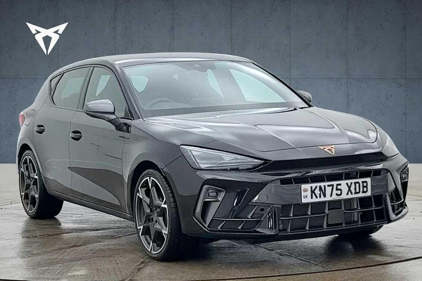 Oldham0 Previous Owners, Experience dynamic performance, premium comfort and sharp styling with this CUPRA Leon Hatch V2 1.5 eTSI DSG 150, finished in sleek Midnight Black Metallic with a sporty Soul Black Dinamica interior featuring signature copper stitching. The V2 trim enhances the Leons athletic character with highquality materials, advanced technology and a refined, driverfocused feel. This model comes equipped with the Driving Performance Package, featuring striking 19" Polar alloy wheels, adaptive chassis control, upgraded shock absorption front and rear, a rear stabiliser bar and a sophisticated 4link rear suspension for improved balance and handling. Servotronic speedsensitive steering adds precision and control, making every drive more engaging. Inside, the Interior Pack: Moon Light delivers heated front sports seats, memoryfunction exterior mirrors, upgraded door and side trim, and electric seat adjustment for the passenger with memory settings. The drivers seat is manually heightadjustable, with poweradjustable lumbar support to enhance comfort during longer journeys. The Edge Pack further boosts usability and peace of mind with a rearview camera system, Keyless Advanced entry and start, an antitheft alarm system and ambient interior lighting. With its copper accents and premium textures, the cabin offers a stylish, upscale look that complements the Leons dynamic exterior. Powered by the smooth and efficient 1.5 eTSI mildhybrid petrol engine paired with a 7speed DSG auto...