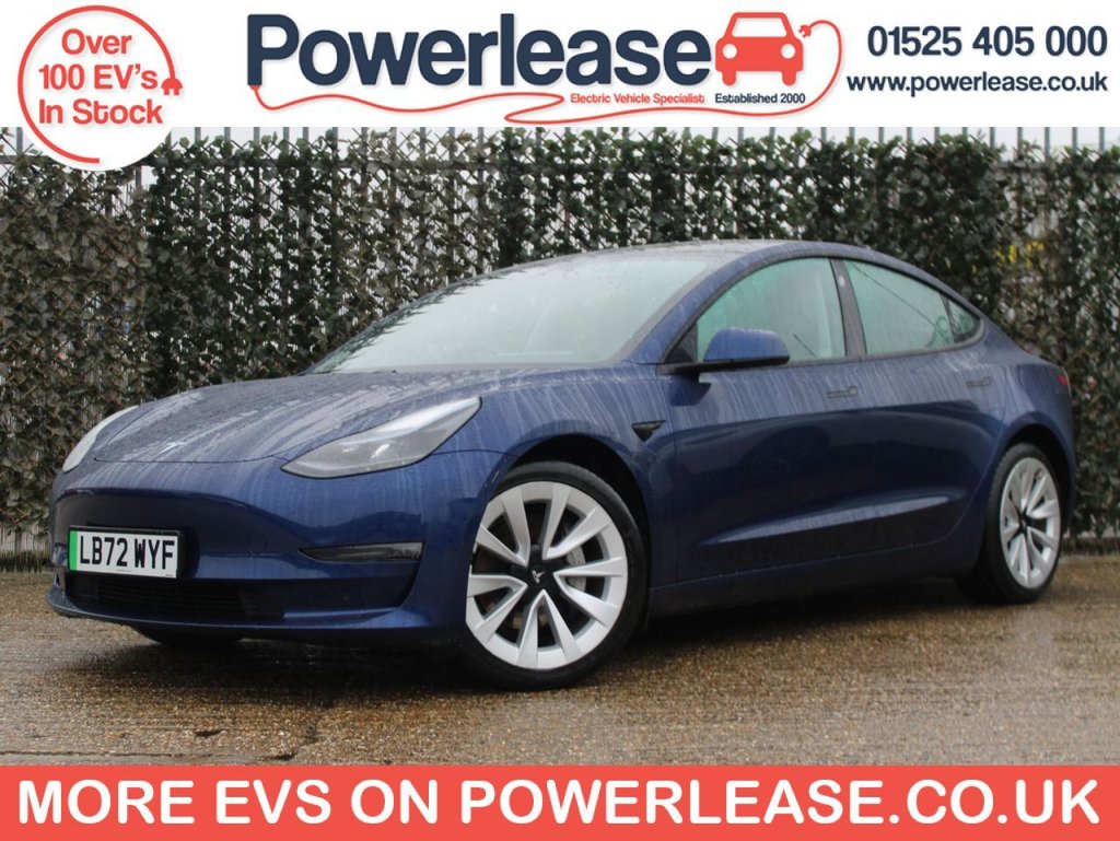 0 Previous Owners, **95% BATTERY HEALTH** This 2022 Tesla Model 3 Long Range presents a superb ownership proposition, having had only one owner since new. As an electric vehicle, it boasts a substantial 78 kWh battery, offering an impressive maximum range of 389 miles when new. This Long Range variant features a Four Wheel Drive drivetrain, ensuring confident handling in various conditions. Charging at home with a 7kW charger will take approximately 12 hours for a full charge, while rapid public charging can take you from empty to 80% in as little as 26 minutes. The highlights of this Model 3 Long Range truly set it apart. Its acceleration is remarkable, achieving 0 to 60 miles per hour in just 4.2 seconds, demonstrating a level of performance that surpasses many other vehicles in its class. Combined with its extensive electric range and efficient charging capabilities, this Tesla Model 3 offers a compelling blend of performance, practicality, and advanced electric technology for the discerning driver. BATTERY HEALTH CHECK AVAILABLE ON REQUEST SPECIALIST EV EXTENDED WARRANTIES ALL VEHICLES FULLY INSPECTED ALL VEHICLES SERVICED & MOTED HPI CHECKED AND CERTIFIED FINANCE AVAILABLE PART EXCHANGE AVAILABLE CLICK AND COLLECT AVAILABLE HOME DELIVERY AVAILABLE BUY ONLINE VIA OUR WEBSITE WWW.POWERLEASE.CO.UK IN BUSINESS FOR OVER 20 YEARS EST 2000 .12Way Power Adjustable Front and Rear Heated Seats, 15in Touchscreen with Onboard Maps and Navigation, 18in Alloy Wheels Aero, 2 Zone Climate Control, 3x3 Point Rear Seat Belts, 6040 Split Folding Rear Seats, ABS Antilock Braking System, Adaptive Cruise Control, Adaptive Steering, Additional USBA Port Glove Compartment, Air Conditioning, Airbags Curtain, Airbags Driver, Airbags Passenger, Airbags Side, Ambient Interior Lighting, Audio Remote Control, Auto Dimming Power Folding Heated Side Mirrors, Automated HighBeam Assist, Automatic Emergency Braking, Autopilot Function, Blind Spot Information, Bluetooth Connection, Body Coloured Bumpers, Centre Console with Storage 4 USB Ports and Docking for 2 Smartphones, Collision Avoidance, Custom Driver Profiles, Daytime Running Lights LED, Deep Blue, Digital Radio, DVD, Electric Hinged Side Doors Front, Electric Hinged Side Doors Rear, Electrically Adjustable Drivers Seat, Electrically Adjustable Passenger Seat, Electrically Adjustable Steering Column TiltTelescopic, Electronic Stability Control and Traction Control, Exterior Satin Black, Fixed Panoramic Glass Roof, Front Armrest, Front Cross Traffic Camera, Front Electric Windows, Front Head Restraints, Graphite Finish Seat Controls, Heat Pump, Heated Steering Wheel, Height Adjustable Drivers Seat, InCar Internet Streaming Music and Media, Inductive Charging Mats Two Smartphones, Interior Carpeting, Interior Floor Mats, Internet Browser, Internet Connection, Isofix Child Seat Anchor Points, Keyless Entry and Remote Control with App, Keyless Go, Lane Departure Warning, LED Foglights, LED Headlights, LocationAware Automatic Garage Door Opener, Map and Reading Lights, Matt Finish Trim, Media Storage, Metalised Scroll Wheels Steering Wheel, Mobile Phone App Interface, Navigation System, NonSafetyCritical Software Updates over Cellular, OEM Sound System, Park Assist Camera, Power Steering Speed Sensitive, Powerlift Trunk, Premium Audio 14 Speakers 1 Subwoofer 2 Amps and Immersive Sound, Premium Engineered Material Black, Radio AMFM Internet Streaming, Rear Cross Traffic Camera, Rear Electric Windows, Rear Headrests, Rear Light LED, Rear Taillights LED, Remote Central Locking, SatelliteView Maps with Live Traffic Visualisation and Navigation, Satin Black Sill Plates, Seat Belt Reminders, Seats Heated Front, Seats Heated Rear, Service Indicator, Software Updates over WIFI, SteerByWire Technology, Steer