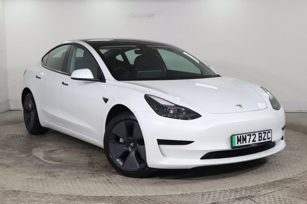 Insurance Group 48, 0 Previous Owners, This 2022 Tesla Model 3 presents an exceptional ownership proposition with its remarkably low mileage of just 20,663 miles, a testament to its careful single owner. As a fully electric vehicle, it boasts a 62 kWh battery offering a maximum range of 317 miles when new. Charging is convenient, taking approximately 8 hours for a full charge at home using a 7kW charger, while rapid public charging can replenish the battery from empty to 80% in as little as 29 minutes. This Model 3 is equipped with modern features including LED headlights, 2 zone climate control for personalised comfort, and keyless go for effortless entry and starting. The heated steering wheel adds a touch of luxury on colder days, and the fixed panoramic glass roof creates an airy and spacious cabin feel. The generous boot space of this Tesla Model 3 provides ample room for luggage, shopping, or sports equipment, making it a practical choice for everyday use and longer journeys. Its electric powertrain and efficient battery management mean you can enjoy extended travel with fewer stops, and the rapid charging capability further enhances its usability. Compared to other vehicles in its class, the combination of its low mileage, single owner history, impressive electric range, and desirable features like the panoramic roof and heated steering wheel, positions this Model 3 as a standout option for those seeking a premium electric driving experience..12Way Power Adjustable Front and Rear Heated Seats, 18in Alloy Wheels Aero, 2 Zone Climate Control, 3x3 Point Rear Seat Belts, ABS Antilock Braking System, Adaptive Cruise Control, Adaptive Steering, Additional USBA Port Glove Compartment, Air Conditioning, Airbags Curtain, Airbags Driver, Airbags Passenger, Airbags Side, Audio Remote Control, Audio System with 8 Speakers and Limited Immersive Sound, Auto Dimming Power Folding Heated Side Mirrors, Automated HighBeam Assist, Automatic Emergency Braking, Autopilot Function, Blind Spot Information, Bluetooth Connection, Body Coloured Bumpers, Centre Console with Storage 4 USB Ports and Docking for 2 Smartphones, Collision Avoidance, Custom Driver Profiles, DVD, Daytime Running Lights LED, Digital Radio, Electric Hinged Side Doors Front, Electric Hinged Side Doors Rear, Electrically Adjustable Drivers Seat, Electrically Adjustable Passenger Seat, Electrically Adjustable Steering Column TiltTelescopic, Exterior Satin Black, Fixed Panoramic Glass Roof, Front Armrest, Front Cross Traffic Camera, Front Electric Windows, Front Fog Lights, Front Head Restraints, Graphite Finish Seat Controls, Heat Pump, Heated Steering Wheel, Height Adjustable Drivers Seat, Inductive Charging Mats Two Smartphones, Interior Carpeting, Interior Floor Mats, Internet Connection, Isofix Child Seat Anchor Points, Keyless Go, LED Headlights, Lane Departure Warning, Map and Reading Lights, Matt Finish Trim, Media Storage, Metalised Scroll Wheels Steering Wheel, Mobile Phone App Interface, Navigation System, OEM Sound System, Park Assist Camera, Power Steering Speed Sensitive, Powerlift Trunk, Premium Seat Material and Trim, Radio AMFM Internet Streaming, Rear Cross Traffic Camera, Rear Electric Windows, Rear Headrests, Rear Light LED, Remote Central Locking, Satin Black Sill Plates, Seats Heated Front, Seats Heated Rear, Service Indicator, Software Updates over WIFI, SteerByWire Technology, Steering Wheel Mounted Controls, Telephone, Tinted Glass Roof with Ultraviolet and Infrared Protection, Traction Control, Traffic Sign Recognition, Trip Computer, Two Additional USBC Port, Type 2 Public Charging Connector, Tyre Pressure Monitoring System, USBiPod Interface, Upgraded Audio Immersive Sound, 12Way Power Adjustable Heated Front Seats, Front Parking Sensor, Rear Parking Sensor, Reverse Parking Aid