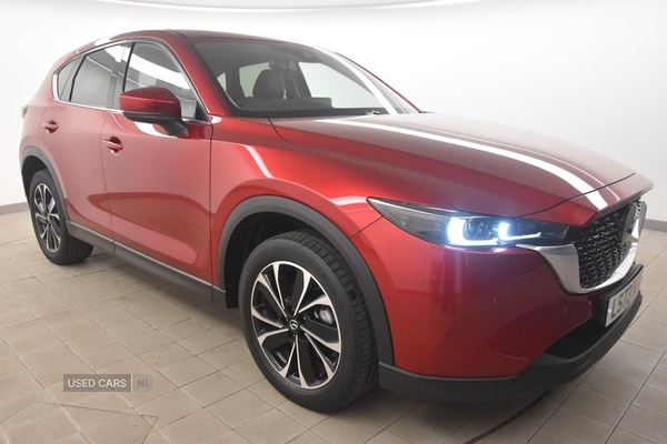 BelfastInsurance Group 18, 0 Previous Owners, The Mazda CX5 2.0 eSkyactiv G MHEV ExclusiveLine offers versatility and comfort for a wide range of drivers. With a mileage of 36,859, this estate provides a spacious driving environment and a flexible boot capacity ranging from 522 to 1,638 litres, making it suitable for everyday journeys and larger loads. The manual transmission delivers an engaging driving experience, while features such as dual zone climate control, leather upholstery, and an eightway electric driver seat with lumbar support enhance comfort on every trip.The 2.0litre petrol mild hybrid engine produces 165 bhp, allowing for a top speed of 125 mph. The power delivery is refined, supporting relaxed motorway driving and smooth city manoeuvres. The mild hybrid system is designed to improve efficiency and responsiveness, providing a balanced blend of performance and economy.Finished in red with body colour door mirrors, a gloss black front grille with chrome signature wing, and satin black side mouldings, the Mazda CX5 presents a modern and refined appearance. The estate body is complemented by LED headlights, signature LED rear combination lights, privacy glass, and dual chrome tailpipes. Interior styling includes a black inlay dashboard panel, leatherwrapped steering wheel and gear knob, and a light roof lining, creating an inviting and contemporary atmosphere.Specification highlights include a 10.25inch display with Mazda Connect infotainment, integrated navigation, front and rear parking sensors, a reversing camera, and wireless Apple CarPlay and Android Auto. Advanced safety systems such as adaptive front lighting, advanced blind spot monitoring, collision prevention assist, and radar cruise control provide reassurance on every journey. Convenience features include a power liftgate, keyless entry, heated front seats, a heated steering wheel, and a power tilt/slide sunroof, ensuring comfort and accessibility for all occupants