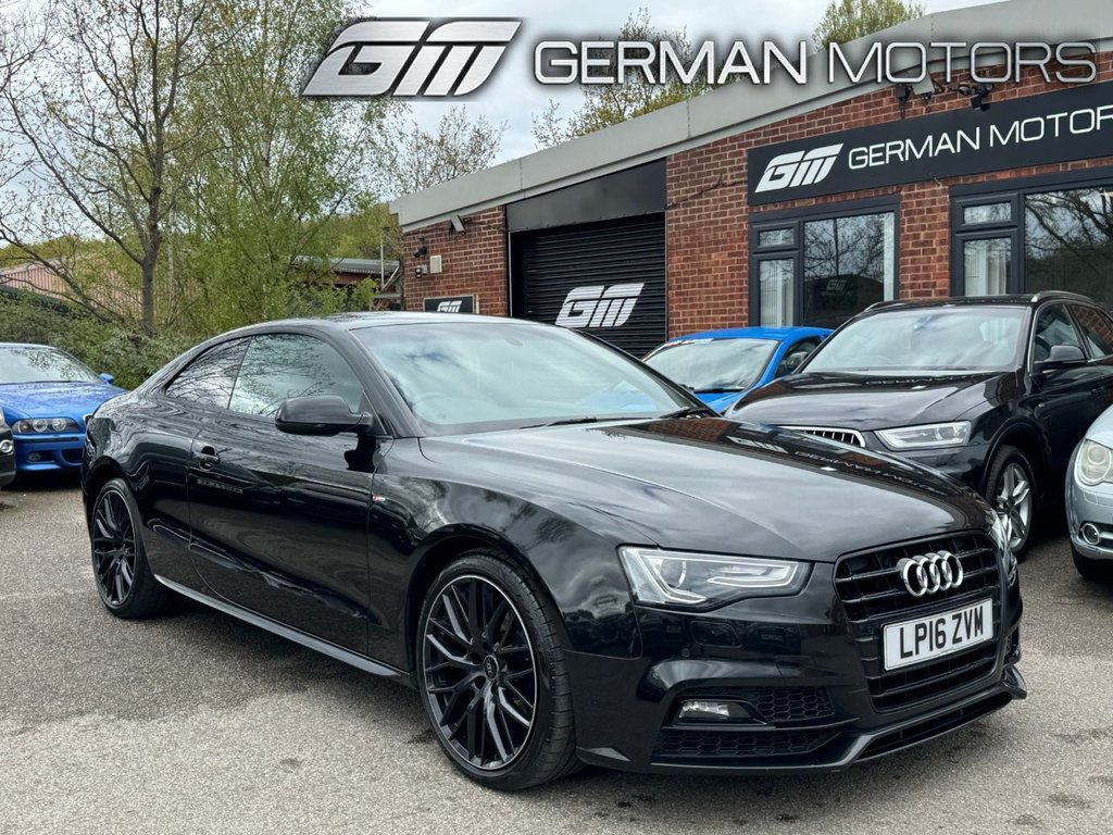 Leeds2 Previous Owners, GERMAN MOTORS ARE PROUD TO OFFER THIS STUNNING AND GREAT VALUE A5 BLACK EDITION, FULL SERVICE HISTORY INCLUDING CAMBELT CHANGE, 2 PREVIOUS OWNERS, BANG & OLUFSEN STEREO, HEATED SEATS, SAT NAV, BLUETOOTH, BLUETOOTH AUDIO, FRONT AND REAR PARKING SENSORS, CRUISE CONTROL /// COMPETITIVE FINANCE AVAILABLE /// FINANCE AVAILABLE /// VIEWING STRICTLY BY APPOINTMENT.12V Power Socket x2, AMI Audi Music Interface, AUXIN Socket, Amplifier 10Channel, Bang and Olufsen Sound System, Colour Centre Console Screen, Concert Radio MP3CD Player, DAB Digital Radio, EDL Electronic Differential Lock, Electromechanical Power Steering, Front Fog Lights, Headlights Automatic Activation, Headlights BiXenon Plus, LED Daytime Running Lights, LED Rear Lights, Mobile Telephone Preparation Bluetooth Interface, SD Card Reader, Satellite Navigation System Plus HDDBased MMI, Speakers x14 505 Watts, Sport Suspension, 19in Alloy Wheels 10Spoke Y Design, Anti Theft Locking Wheel Bolts, Black Styling Package, Door Mirrors Electrically Adjustable and Heated, Dynamic Bumper, Electric Windows Front, Exhaust Tailpipe Chrome Rolled Finish, Gloss Black Door Mirrors, Privacy Glass, Radiator Grille Matt Black, Radiator Grille Frame Highly Polished Black, Rear Diffuser High Gloss Black, Side Mirrors in HighGloss Black, Space Saver Spare Wheel, Spoiler Body Coloured, ABS AntiLock Braking System, Airbags Driver, Airbags Front Passenger, Airbags Front Side System, Airbags Head Level Side For Front and Rear, Alarm Thatcham Category 1, Audi Parking System Plus, Colour Drivers Information System DIS, Cruise Control, ESP Electronic Stability Programme, Electromechanical Parking Brake, First Aid Kit, Front Passenger Airbag Deactivation Switch, ISOFIX Child Seat Mounting for Front Passenger, ISOFIX Child Seat Preparation for Rear Seats, Intelligent Key, Misfuelling Inhibition, Rest Recommendation System, Tyre Pressure Monitoring System, Warning Triangle, Auto Opening Boot Lid, AutoDimming RearView Mirror, Automatic Wipers with Rain Sensor, Climate Control Electronic 3Zone, Cloth Headlining in Black, Cup Holders Centre Console, Front Centre Armrest, Front Sports Seats, Front and Rear Floor Mats, Gear Knob Perforated Leather, Headlights Range Adjustment, Heated Front Seats, Inlays Piano Finish Black, Interior Chrome Package, Pedals in Stainless Steel, Seats Front Sports with Electric Lumbar Support, SideSills in HighGloss Black, SplitFolding Rear Seats, Steering Column Rake and Reach Adjustment, Steering Wheel 3Spoke LeatherMultifunctionFlat Bottomed, Tool Kit and Car Jack