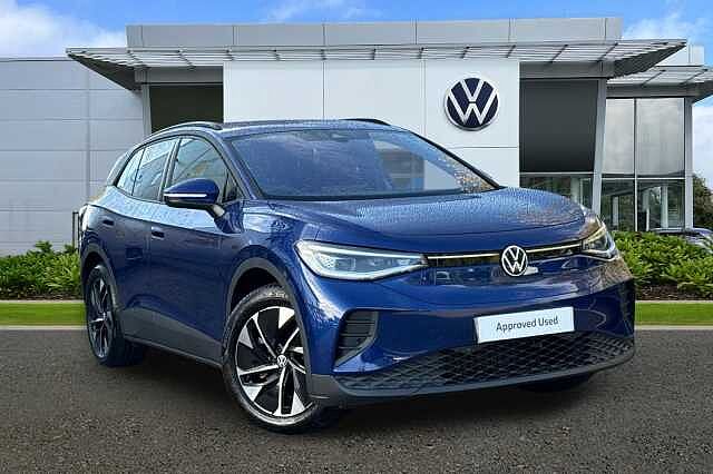 0 Previous Owners, Rear window wiper, Roof rails, Navigation system, DAB radio, Voice control, Air conditioning, Brake assistant, Central locking, Cruise control, daytime running lights, Electric windows, Heated front seats, Heated steering wheel, Keyless Start, Light sensor, Rain sensor, USB, ABS, Active brake assist, Adaptive cruise control, 2x Front airbags (driver + passenger), Alarm device, ESP, Immobiliser, Rear wheel drive, Traction control, 5 seats, Ambient lighting, Centre arm rest, Divided back seats, ISOFIX Child seat fastener, Leather, Leather steering wheel, Singleseater, Tinted windows, Delivery from 20.01.2026, 5 doors, Heated front window, Speed limit: 112 mph Paint Metallic, Metallic Blue Dusk, Trim Cloth, Art velours microfleece cloth Soul black/Platinum grey stitching Exterior Features, Climate windscreen assists defrosting and prevents fogging, Front and rear electric windows, Heat insulating darkened glass in side and rear windows, Heated windscreen washer jets, Rain sensor, Rear tinted glass from Bpillar backwards approx 65% tinted, Rear windscreen washer and wiper with interval delay, Variable front intermittent wipers, Body colour door handles, Body coloured bumpers, Front underbody guard, Rear side wing doors, Roof trim strip in matte black, Silver roof rails, Advanced dynamic light assist for LED matrix headlights, Ambient lighting, exterior illuminated styling elements in door handle recesses and front grille, Daytime running lights, LED rear tail lights with dynamic turn signal, Matrix LED headlights with automatic headlight control, Poor weather light and entry lighting, Third brake light, Welcome light, Safety, Antilock braking system (ABS), Autonomous emergency braking front assist with pedestrian and cyclist monitoring, Drum brakes in rear, Electronic parking brake with auto hold, Electronic Stability Programme (ESP), Front disc brakes, Traction control, Adaptive cruise control, Advanced driver attention and drowsiness monitor, Driving profile selection, Dynamic road sign display, Lane change system side assist and rear traffic alert, Oncoming vehicle braking when turning including swerve support, Park assistance plus with front and rear parking sensors, Power assisted speed sensitive steering, Automatic dimming interior rear view mirror, Exterior mirrors convex on the left and aspherical on the right, Gloss black door mirrors with integrated indicators, 3 Point seat belts in front with pretensioners, 3x3 point rear seat belts, Child safety lock, Driver and front passenger airbag with front passenger airbag deactivation, First aid kit with warning triangle and safety vest, Front curtain and side airbags with center airbag, Proactive passenger protection system in combination with front assist, Seat belt reminder (Japan design), Two tone horn, Tyre pressure loss indicator, Interior Features, Front + rear carpet mats, Air care climatronic 2 zone air conditioning system, Electric auxiliary air heater, 2 USBC ports in the front, 2 USBC charging sockets on the centre console in rear, charging capacity up to 45 W, Armrests for both front seats, Art Velours microfleece cloth upholstery, Backrest with ID perforation, Black steering wheel, Central control unit in black, Centre console with illuminated storage compartment with sliding cover and two drinks holders, Door and side trim panel with leatherette insert, Headliner in recycled material, Illuminated smartphone storage compartment, Leatherettewrapped multifunction heated steering wheel with touch control, Operating voltage 12V, Play and Pause brake and accelerator pedals, Pockets and smartphone pockets in seats, Reach + rake adjustable steering column, Sides,rear and armrest in leatherette, Rear wheel drive, Sun visors with illuminated vanity mirrors, Audio / Communications, Car2X intelligent vehicle networking, Natural voice control, Online service, with OCU, with head unit coding, without engine immobilizer interconnection, Preparation for We connect and We connect plus, Telephone interface comfort with inductive charging function, We Charge Go access, We Connect Plus integrated data volume, Wireless app connect, Wireless Smartphone charger, DAB Digital radio, Diversity antenna for FM reception, Gaming platform via car app, Radio Ready 2 discover, Driver Convenience, Electricallyoperated tailgate opening and closing function (Easy open), operated via foot movement under rear tailgate, Miscellaneous, Central control unit 12.9" infotainment screen in black, Discover pro navigation, Drivers assistance, Emergency call service, Hand brake/low brake fluid level warning light and inscription, Speedo and rev counter, electronic odometer, trip, service interval display and exterior temperature gauge, Warning signal and warning light for front and rear seatbelts not fastened, Washer fluid level indicator, 82 kWh High voltage battery, Battery 320 A (49 Ah), Standard electronic engine sound actuator, Trim, Soul black dash