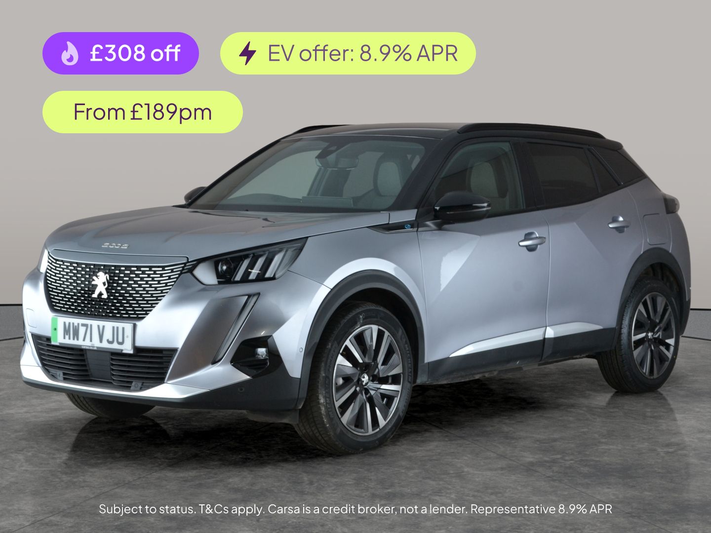 Towcester0 Previous Owners, Experience the future with this stylish grey Peugeot E2008 GT! Enjoy top comforts like Alcantara seats, Adaptive Cruise Control and a wireless charger for seamless journeys. Effortless navigation with Sat Nav, Apple CarPlay, and Bluetooth connectivity. Stay safe with front and rear parking sensors, a reversing camera, Blind Spot Assist, and Lane Departure Warning System. LED headlights illuminate your way and keyless entry adds ease to every trip. This electric SUV is perfect for those who want style and innovation in every drive. 3 services recorded, last serviced on 03/11/2025 at 17,325 miles. MOT to 30/12/2026. Visit our website for service history, online valuation, full vehicle specification plus multiple images. This vehicle is VAT qualifying. Any feature/option specified here is from 3rd party data. We cannot guarantee the accuracy of any specification supplied by a 3rd party. We recommend that you physically check the specification of the vehicle on site prior to purchase. This information does not form part of the buying contract. Terms & Conditions apply. We have over 2,000 cars available from our 10 national branches, check our website to see all our stock. Our Trustpilot rating is 4.4/5 with over 9,000 reviews.