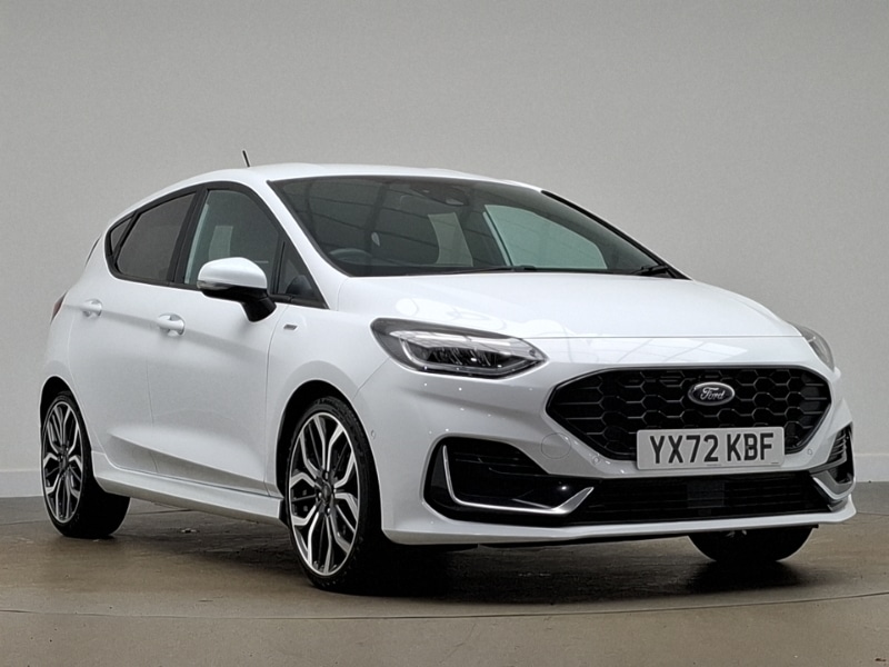 Insurance Group 18, 0 Previous Owners, Android Auto, Apple CarPlay, Heated steering wheel, Rear parking sensor, 12.3" Full digital cluster, Driver alert system, Electric power steering, Ford SYNC 3 Nav with DAB radio, 8" touch screen, voice control, emergency assist, Apple CarPlay/Android auto, 2x USB, 6 speaker, Ford pass connect, Rear parking distance sensors, Rear view camera, Selectable drive modes (Normal, Sport, Track), Wrong way alert, Speed sign recognition, Sports suspension, Front unique ST scuff plates, LED Night signature to rear lights, LED third brake light, Quickclear heated windscreen, Rain sensing wipers and auto dimming rear view mirror, Rear privacy glass, Unique STLine upper grille & full bodystyling kit with STLine wing badges, EATC Electronic Auto Temperature control, LED ambient lighting, Manual 4way driver seat adjust, Sensico partial premium leather upholstery with red stitching, Sensico wrapped steering wheel, NCAP Pack Fiesta, Winter pack [GTBAB] Fiesta, 3 point seatbelts on all rear seats, Electronic stability control with hill start assist, Manual child lock in rear doors, Tyre pressure monitoring system, Ford keyfree system with Keyless entry and keyless start, MyKey system, Thatcham alarm with power door dead locks, Remote central locking, 18" 5x2 spoke alloys with pearl grey machined finish