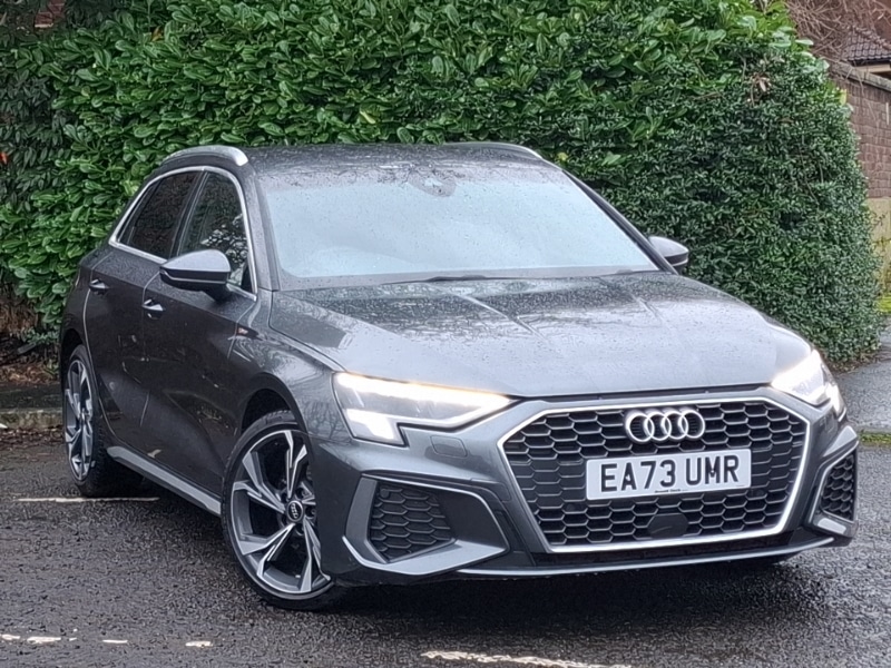 Insurance Group 15, 0 Previous Owners, S line styling pack A3 Sportback, MMI Navigation Plus with high resolution 10.1" colour touch screen display, Audi Virtual Cockpit 10.25" digital and colour instrument cluster, Audi smartphone interface, Audi drive select (Auto, Comfort, Dynamic and Individual), Bluetooth interface, Camera based traffic sign recognition, Collision avoidance assistant, Lane departure warning system, Voice control system with natural language interaction, 2xUSBC connection with data and charging functions, DAB Digital radio, LED headlights with LED rear lights and dynamic rear indicators, Light and rain sensors, Privacy glass dark tinted rear window, rear door and side windows, Dual zone electronic climate control, Sports suspension, 6 passive loudspeakers, Electrically adjustable/heated/folding/auto dimming door mirrors with integrated LED indications + kerb view function for passenger side, S line bumpers, S roof spoiler, 60/40 split folding rear seat bench, 4 way electrically adjustable lumbar support for driver and front passenger, Twin leather upholstery with front sports seats S embossed logo, Seat side bolsters, LED interior lighting pack A3 Sportback, Aluminium interior elements pack A3 Sportback, Dark spectrum aluminium inlays, accent surfaces in the dashboard and centre console in platinum grey silk effect paint finish