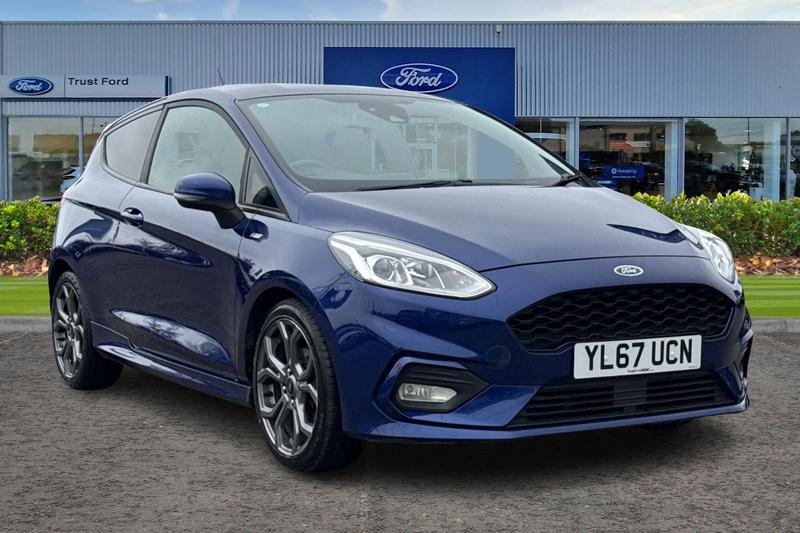 CastlefordInsurance Group 15, Bluetooth system, Electric power steering, Ford easy fuel, Trip computer, Body colour bumpers, Body colour door handles, Body colour large rear spoiler, Chrome door handles, Chrome lower window surround, Cornering front fog lights, Electric front windows/one touch facility, Privacy glass, Quickclear heated windscreen, Rear wiper, Rugged body styling kit with active front wing badges, Tinted glass, Unique STLine upper grille & full bodystyling kit with STLine wing badges, 12V Accessory socket in centre console, 3 spoke flat bottomed leather steering wheel, 60/40 split folding rear seat, Adjustable head restraints, Black headlining, Boot carpet, Centre console with armrest and illuminated cupholders, Chrome inner door handles, Cloth upholstery, Footwell illumination, Front and rear velour floor mats, Front map reading lights, Front seat and rear pockets, Height adjustable driver's seat, Illuminated glovebox, Leather gear knob, Leather trimmed handbrake handle, Load area light, Manual air conditioning, Overhead console with sunglasses holder, Pollen filter, Rake/reach adjustable steering wheel, Rear centre head restraint, Sports front seats, Sports pedals, 3 point seatbelts on all rear seats, ABS+EBA, Curtain airbags, Driver and passenger airbags, Drivers knee airbag, Electronic stability control with hill start assist, Front passenger airbag deactivation, Front side airbags, Seatbelt warning, Tyre pressure monitoring system