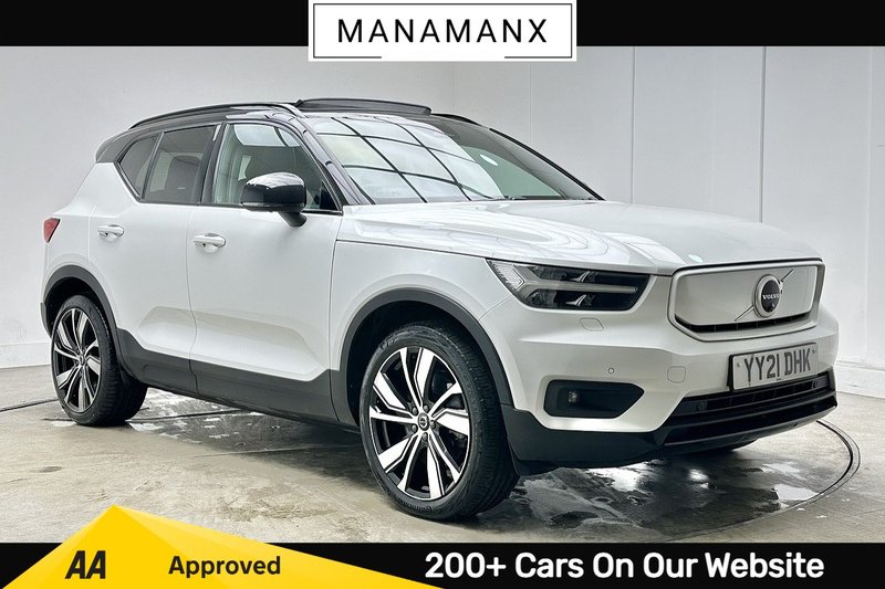 1 Previous Owner, ** Every vehicle we offer is subject to an independent AA inspection, providing our customers with confidence and reassurance when purchasing from Manamanx. ***** EXCELLENT SPEC! *** Manamanx are extremely proud to present this Volvo XC40 Pro presented in Crystal White with a Black Leather interior. Available NOW! and presented to you with only 2 owners from new, Complemented with documented service history. Don't Delay, Call Us Today to secure your appointment with one of our dedicated and experienced Sales Advisors! This car has been well cared for and is in excellent condition, with just 66,394 miles on the clock.****** VISIT US TODAY! ****** Discover this 2021 Volvo XC40 Pro. This stunning vehicle is equipped with a wealth of specification below! ??????????? BLUETOOTH ? TOUCHSCREEN DISPLAY ? WIRELESS PHONE CHARGING ? SATELLITE NAVIGATION ( SATNAV ) ? PARKING SENSORS ? 360 PARKING CAMERA ? AUTO FOLD/HEATED POWER SIDE MIRRORS ? PANORAMIC GLASS SUNROOF ( PANROOF ) ? AUTO HEADLIGHTS ? DUAL ZONE CLIMATE CONTROL ? HEATED STEERING WHEEL ? POWERED TAILGATE ?Don't miss out on the chance to own this fantastic car! View the full specification list below and in the extra features section.At Manamanx, we consider all vehicles for part exchange, regardless of age, mileage, or condition. Our team will provide a fair and competitive valuation to make upgrading to your next car as simple and hasslefree as possible.** Please note that cars offered by Manamanx are used cars. These vehicles may therefore have imperfections, commensurate with age and mileage. This is reflected in the advertised price. **.Crystal White,Black Leather, 12V Socket Front Tunnel Console and Cargo Compartment, 9in Centre Console Portrait Touch Screen, Bluetooth Handsfree System, DAB Digital Audio Broadcasting Radio, Google Automotive Services, Roof Antenna, Sensus Connect with Premium Sound by Harman Kardon, Volvo Cars Services with App, WirelessInductive Mobile Phone Charging, Front Park Assist, Parking Camera 360 Surround View, Road Sign Information Display, Tyre Pressure Monitoring System, Autodimming Exterior Mirrors, Autofolding Heated Power Door Mirrors, Black Stone Door Mirrors, Black Stone Roof, Colour CoOrdinated Front Covered Grille and Surround, Dark Tinted Windows Rear Side Windows and Cargo Area, Embossed Rear Side Roof Pillar, Front and Rear Power Windows, High Gloss Black Deco Lower Front Bumper, High Gloss Black Window Trim Surround, Power Glass Tilt and Slide Panoramic Sunroof with Sun Curtain, Roof Rails Integrated High Gloss Black, Roof Spoiler, Automatic Headlight Levelling System, Automatic LED Headlights with Active High Beam incorporating Day Running Lights, Front LED Fog Lights with Cornering Function, Headlight Cleaning System, Headlights Active Bending, Home Safe and Approach Lighting, 12.3 Progressive Driver Display, 2Zone Electronic Climate Control with Rear Air Vents CleanZone Air Quality System with Pollen Filter, 3Spoke Tailored Sports Steering Wheel, APillar Parking Ticket Holder, Autodimming Interior Mirror, Centre Console Cupholders and Storage, Convenient Entry and Start, Cutting Edge Aluminium Inlays, Front Load Compartment 31 Litres, Front Seat Cushion Extensions, Front Tunnel Pocket and Integrated Waste Bin, Heated Front Seats, Heated Rear Seats, Heated Steering Wheel, Height and Reach Adjustable Steering Column, Height and Tilt Adjustable Driver Seat, High Gloss Black Centre Tunnel and Centre Screen Surround Deco, Illuminated Vanity Mirrors with Ticket Holder, Multicolour Theatre Lighting, MultiDirectional Lumbar Support, Power Driver Seat with Memory for Seat and Exterior Mirrors, Power Folding Rear Seat Headrests, Power Operated Tailgate, Power Passenger Seat, Rain Sensor Automatic Windscreen Wiper Activation, Rear Armrest with Storage and Cupholders, Rear Clothes Hook, Recharge Tread Plates Front, Seats Passenger Height Adjustment, Sports Pedals, Steering Wheel Remote Infotainment Controls, Tailored Gearknob, Versatile Split Folding Rear Seats 6040, Adjustable Steering Force, Dynamic Chassis, Electric Front and Rear Axle Drive, Heat Pump, Speed Limiter, Speed Sensitive Steering, Adaptive Brake Lights including High Level LED Brake Light, AntiTheft Alarm including Immobiliser Volume Sensor and Level Sensor, Care Key with User Defined Top Speed, City Safety, Driver Assistance Pilot Assist and Adaptive Cruise Control, Driver Awareness, Driver Knee Airbag, Dual Stage Driver and Passenger Airbags, High Gloss Black Front and Rear Skid Plate, Hill Descent Control, Hill Start Assist, IC Inflatable Curtains Full Length, ISOFIX Attachment Front Passenger and Outer Rear Seats, Keyless Drive Plus Handsfree Tailgate OpeningClosing, Lane Keeping Aid with Driver Alert Control, Oncoming Lane Mitigation, Passenger Airbag CutOff Switch, Power Child Locks Rear Doors, Private Locking for Tailgate, RunOff Road Mitigation,