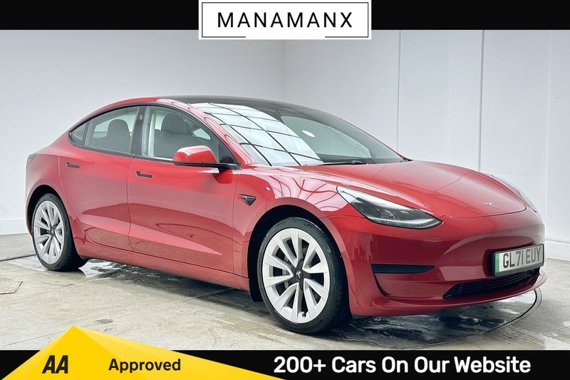 0 Previous Owners, ** Every vehicle we offer is subject to an independent AA inspection, providing our customers with confidence and reassurance when purchasing from Manamanx. ***** EXCELLENT SPEC! *** Manamanx are extremely proud to present this Tesla Model 3 Standard Range Plus presented in Red ( £2,100 Colour Option! ) with a Black Premium Engineered Material interior. Available NOW! and presented to you with only 1 owner from new! Don't Delay, Call Us Today to secure your appointment with one of our dedicated and experienced Sales Advisors! This car has been well cared for and is in excellent condition, with just 48,706 miles on the clock.****** VISIT US TODAY! ****** Discover this 2021 Tesla Model 3 Standard Range Plus. This stunning vehicle is equipped with a wealth of specification below! ??????????? BLUETOOTH ? DAB RADIO ? OEM SOUND SYSTEM ? SATELLITE NAVIGATION ( SATNAV ) ? ADAPTIVE CRUISE CONTROL ? LANE DEPART WARNING ? REAR VIEW CAMERA ? PARKING SENSORS ? POWER FOLD/HEATED SIDE MIRRORS ? PANORAMIC GLASS SUNROOF ( PANROOF ) ? AUTO HIGH BEAM ASSIST ? LED HEADLIGHTS ? HEATED FRONT SEATS ? DUAL ZONE CLIMATE CONTROL ? POWERED TAILGATE ? HEATED FRONT SEATS ? STEERING WHEEL MOUNTED CONTROLS ?Don't miss out on the chance to own this fantastic car! View the full specification list below and in the extra features section.At Manamanx, we consider all vehicles for part exchange, regardless of age, mileage, or condition. Our team will provide a fair and competitive valuation to make upgrading to your next car as simple and hasslefree as possible.** Please note that cars offered by Manamanx are used cars. These vehicles may therefore have imperfections, commensurate with age and mileage. This is reflected in the advertised price. **.Premium Engineered Material Black,Red, Audio Remote Control, Audio System with 8 Speakers and Limited Immersive Sound, Bluetooth Connection, Digital Radio, DVD, Internet Connection, Media Storage, Mobile Phone App Interface, Navigation System, OEM Sound System, Radio AMFM Internet Streaming, Upgraded Audio Immersive Sound, USBiPod Interface, Adaptive Cruise Control, Blind Spot Information, Collision Avoidance, Front Parking Sensor, Lane Departure Warning, Park Assist Camera, Rear Parking Sensor, Service Indicator, Traffic Sign Recognition, Trip Computer, Tyre Pressure Monitoring System, Auto Dimming Power Folding Heated Side Mirrors, Body Coloured Bumpers, Electric Hinged Side Doors Front, Electric Hinged Side Doors Rear, Exterior Satin Black, Fixed Panoramic Glass Roof, Front Electric Windows, Rear Electric Windows, Tinted Glass Roof with Ultraviolet and Infrared Protection, Automated HighBeam Assist, Daytime Running Lights LED, Front Fog Lights, LED Headlights, Rear Light LED, 12Way Power Adjustable Front and Rear Heated Seats, 12Way Power Adjustable Heated Front Seats, 2 Zone Climate Control, Air Conditioning, Centre Console with Storage 4 USB Ports and Docking for 2 Smartphones, Electrically Adjustable Drivers Seat, Electrically Adjustable Passenger Seat, Electrically Adjustable Steering Column TiltTelescopic, Front Armrest, Front Head Restraints, Graphite Finish Seat Controls, Height Adjustable Drivers Seat, Interior Carpeting, Map and Reading Lights, Matt Finish Trim, Metalised Scroll Wheels Steering Wheel, Powerlift Trunk, Premium Seat Material and Trim, Rear Headrests, Satin Black Sill Plates, Seats Heated Front, Software Updates over WIFI, Steering Wheel Mounted Controls, Telephone, Autopilot Function, Custom Driver Profiles, Heat Pump, Power Steering Speed Sensitive, 3x3 Point Rear Seat Belts, ABS Antilock Braking System, Adaptive Steering, Airbags Curtain, Airbags Driver, Airbags Passenger, Airbags Side, Automatic Emergency Braking, Front Cross Traffic Camera, Isofix Child Seat Anchor Points, Keyless Go, Rear Cross Traffic Camera, Remote Central Locking, Reverse Parking Aid, SteerByWire Technology, Traction Control