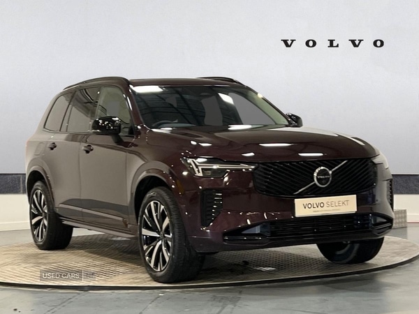 Belfast0 Previous Owners, We are excited to introduce to the market our New model July 2025 registered XC90 T8 (455 Bhp) Recharge Plus Dark AWD Automatic Plug in Hybrid which is finished in stunning Mulberry Red and complimented with a luxurious Quilted Charcoal heated Leather interior. With up to 50 miles of range, this XC90 can be driven on pure electric with substantial savings on fuel. Additional features fitted include: 20' Alloy Wheels, Panoramic Tilt and Slide Sunroof, 360 Degree Rear Parking Camera, Privacy Glass, Heated Front and Rear seats, Heated Steering wheel, Adaptive Cruise Control and an industry leading Harmon Kardon Sound system to list just a few. WHAT YOU CAN EXPECT FROM VOLVO SELEKT Representing Volvo Car UK, we select only the best available cars for you. We improve them through Volvo approved checks and then make them even better with the latest software upgrades. Including MOT Test Cover, Roadside Assistance, and a 30day exchange promise to guarantee your satisfaction. 30day/1,500 mile satisfaction guarantee. 12month Volvo Assistance. Latest software upgrades. Carefully selected and verified with over 150 checks giving you peace of mind wherever you are. For added peace of mind all Volvo Selekt cars have MOT Test Cover included