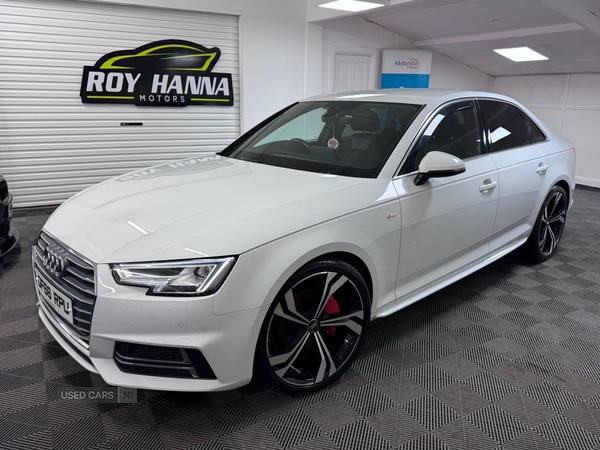 Antrim2 Previous Owners, A truly beautiful 2016 Audi A4 S Line ready for viewing at Roy Hanna Motors!2 Keys.MOT to 15th May 2026.A part service history with stamps at 42,721 miles. 46,616 miles.This car will also be fully serviced and have a predelivery check for its new owner.*Brand new alloy wheels shown in pictures are an optional extra** We have a variety of wheels to chose from for each vehicle*This model is packed full of factory extras like Audi parking system plus with front and rear sensors. Voice control system. Audi Pre sense collision avoidance. Headlight range control. Driver information centre. Colour display in instrument panel. Acoustic windscreen. Front sports seats. LED daytime running lights. Remote electric boot opening/closing. Xenon headlights. Remote central locking. Cruise, Climate and traction controls. Steering wheel mounted controls. AUX & USB connectivity. CD/Radio Player. Body Coloured Bumpers. Electric windows.*We Have Many Different Finance HP & PCP Deals Available To Suit Your Budget, You Can Drive Away In Your New Car With £0 Deposit & Pay Nothing For 2 Full Months!*For A Personalised Quote Give Us A PM / Text / Call Or Propose Yourself For Finance On Our Website*All Usual Dealer Facilities Available.*Credit/Debit Cards Accepted.*Trade Ins Welcome.*Every Vehicle Comes With Warranty.*Every Vehicle Comes With A Multi Point Health Check, Full Service & Put Out Fully Valeted/Polished.Roy Hanna Motors219 Lisnevenagh RoadAntrimBT412JT