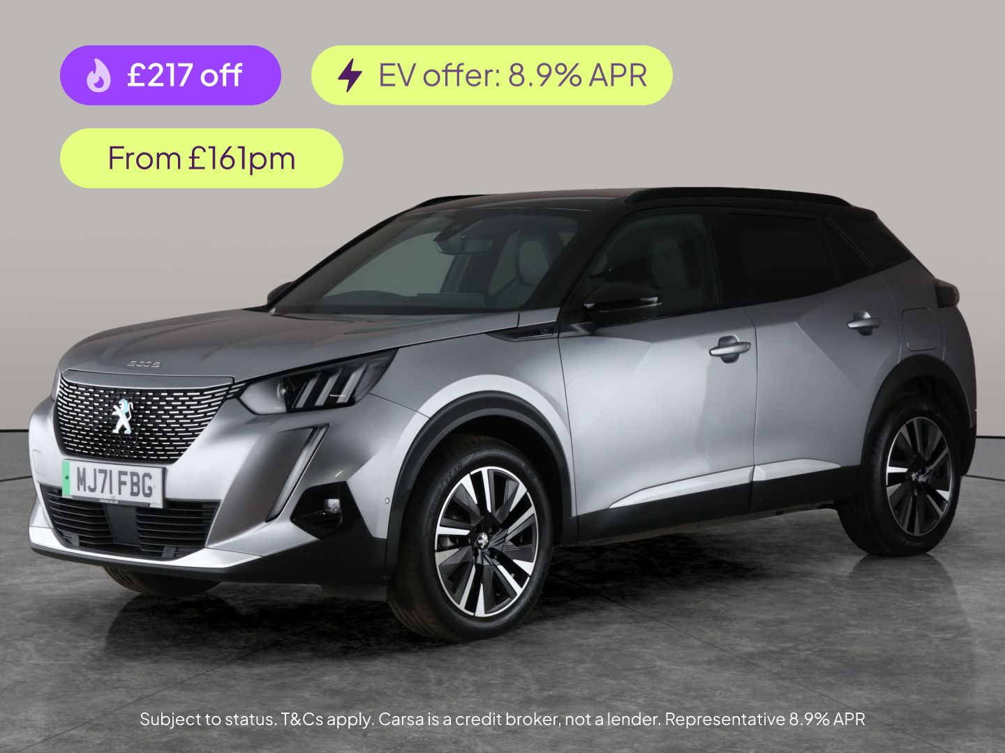 Bishops Auckland0 Previous Owners, Experience the cuttingedge Peugeot E2008 GT with luxurious Alcantara accents and advanced tech features. Enjoy wireless charging, Apple CarPlay, and seamless keyless entry. Stay safe with adaptive cruise control, blind spot assist, and lane departure warning. Parking is effortless with front and rear sensors and a reversing camera, while the LED headlights provide superb visibility. This stylish grey electric SUV is ready for your next adventure. 4 services recorded, last serviced on 12/11/2025 at 41,809 miles. MOT to 09/11/2026. Visit our website for service history, online valuation, full vehicle specification plus multiple images. Any feature/option specified here is from 3rd party data. We cannot guarantee the accuracy of any specification supplied by a 3rd party. We recommend that you physically check the specification of the vehicle on site prior to purchase. This information does not form part of the buying contract. Terms & Conditions apply. We have over 2,000 cars available from our 10 national branches, check our website to see all our stock. Our Trustpilot rating is 4.4/5 with over 9,000 reviews.