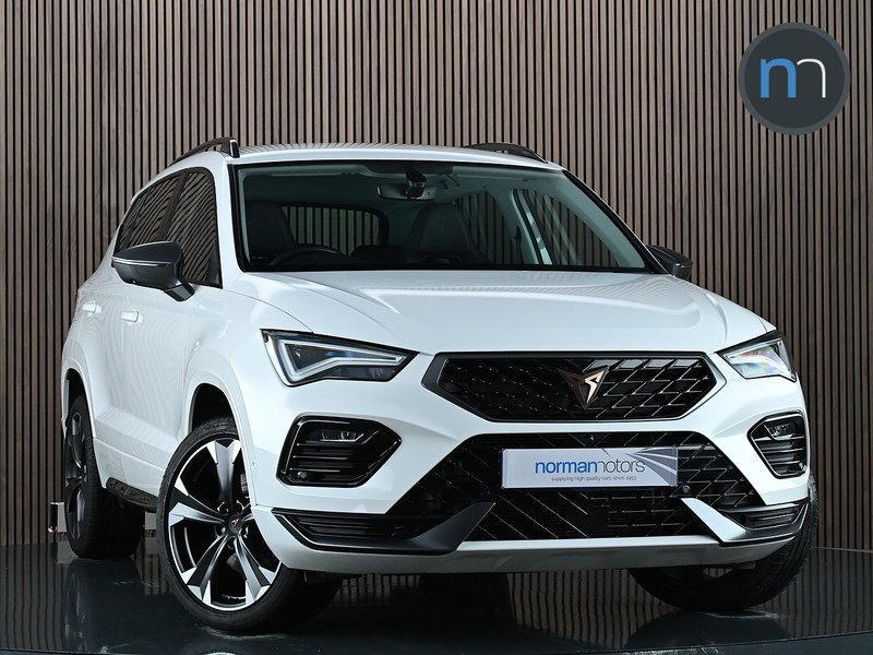 PooleInsurance Group 18, 0 Previous Owners, Norman Motors are pleased to showcase this sporty CUPRA Ateca 1.5 EcoTSI V2 SUV 5dr Petrol DSG which is equipped with Rear View Camera & Winter Package. Only 1 owner from new with Full Service History (last serviced 31/10/2025 18,597 miles). Presented here in Bila White with Heated Black Leather Sport Bucket Upholstery. Upgrades and features include: 19" Sport Machined Black and Silver Alloy Wheels, Rear View Camera, Apple CarPlay, Android Auto, Winter Pack, Heated Front Seats, Heated Steering Wheel, Electric Driver Seat with Memory Function, Wireless Phone Charger, Dark Tinted Rear Windows, Virtual Pedal and Electric Tailgate, Self Parking Functionality includes Front and Rear Parking Sensors, Digital Cockpit, Safety and Driving Pack, Electrically Adjustable Folding and Heated Door Mirrors, LED Headlamps with Lens and LED Fog Lamps, Ambient Lighting, Leather Sports Steering Wheel, Wireless Full Link Smartphone Integration, Navigation System Plus.If you have any questions regarding history, condition, or specification of this vehicle, please get in touch with a member of the sales team..Bila White,Leather Sport Bucket Seats Black, Navigation System Plus, Wireless Full Link Smartphone Integration, Wireless Phone Charger, Cruise Control with Speed Limiter, Digital Cockpit, Driving Profile Selection and Conventional Shock Absorber, Rear View Camera, Self Parking Functionality includes Front and Rear Parking Sensors, Tiredness Recognition System, 19in Alloy Wheels Sport Machined Black and Silver, Dark Tinted Rear Windows, Door Mirrors Electrically Adjustable Folding and Heated, Electric Front and Rear Windows, Standard Rear Exhaust Pipes, LED Headlamps with Lens and LED Fog Lamps with Cornering Function, LED Rear Taillights, Ambient Lighting MultiColoured and LED Interior Illumination, Bucket Sports Seats, Convenience Pack, DualZone Climate Control, Electric Driver Seat with Memory Function, Heated Steering Wheel, Interior Lighting, Leather Sports Steering Wheel with WheelMounted Gearshift Paddles and Leather Gear Stick, Virtual Pedal and Electric Tailgate, Front and Rear Shock Absorption Chassis with Increased Height, CUPRA Connect, Electronic Parking Brake with Autohold Function, Front Assist including Autonomous Emergency Braking, Keyless Entry, Safety and Driving Pack