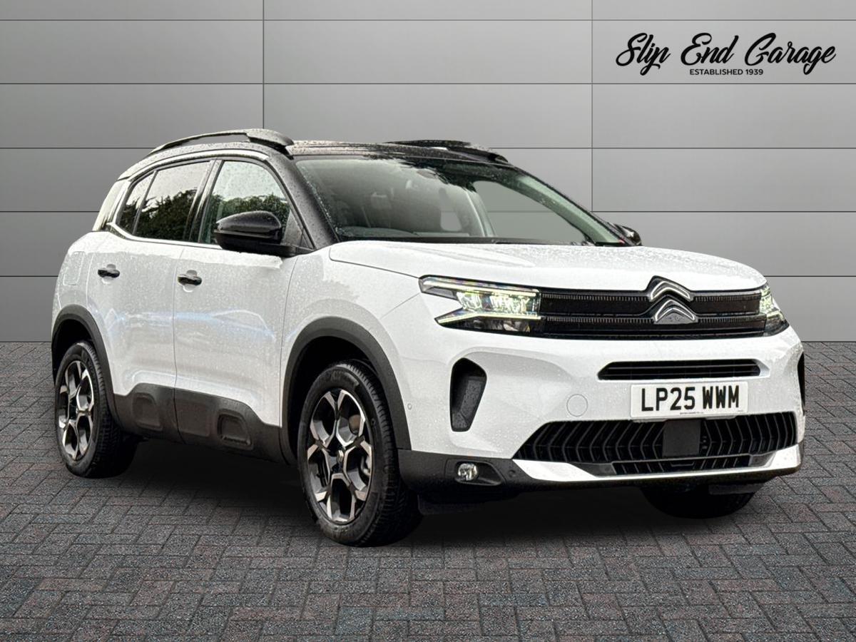 LutonInsurance Group 19, 0 Previous Owners, Franchise Approved, With only 50 miles on the clock, this 2025 Citroen C5 Aircross is practically brand new. As a MAX Edition variant, this model boasts a 1.5L diesel engine and meets Euro 6 emission standards. The vehicle comes equipped with automatic dualzone climate control, ensuring a comfortable environment for all occupants, and an acoustic laminated windscreen with rain and brightness sensors, including automatic headlights. LED headlights with LED daytime running lights enhance visibility and add to the car's visual appeal. Keyless entry and start provide added convenience, while the Drive Assist Pack with Highway Driver Assist, including blind spot assistance and adaptive cruise control, makes long journeys easier and safer. Having had only one owner, this C5 Aircross MAX Edition is ready for its next chapter.This particular Citroen C5 Aircross stands out with its impressive fuel economy of 54 mpg, meaning fewer trips to the petrol station and more money in your pocket. The low CO2 emissions also mean you'll be contributing less to environmental pollution than with similar vehicles. In addition, the large boot space offers practicality, making it ideal for families or anyone needing ample storage.