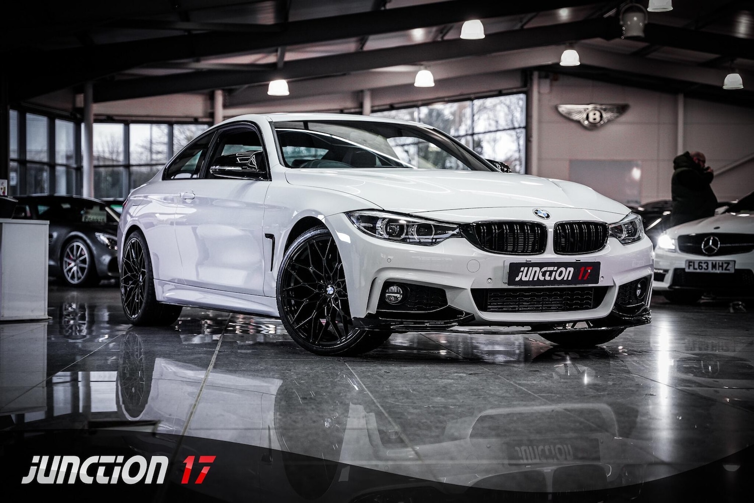 Rugby1 Previous Owner, *CLICK BUY COLLECT* FINANCE AVAILABLE! HPI CLEAR! Junction 17 Cars now have to offer a stunning BMW 4 Series 2.0 420d M Sport Auto Euro 6 (s/s) 2dr.. Service History recorded on iDrive.. Finished in Alpine White and complemented by Black Dakota Leather Upholstery.. Desirable Specification.. Full Lip Styling Kit fitted.. Upgraded 20'' Alloys.. BMW Professional Navigation.. Front and Rear Park Distance Control.. Heated Front Seats.. and more.*ANY THIRD PARTY VEHICLE INSPECTIONS ARE WELCOME* *WE WILL BEAT ANY CAR VALUATION SITE FOR YOUR PART EXCHANGE* Junction 17 Cars (Runner Up at the Motor Trader Independent Dealer Awards 2019 nominated for Car Supermarket of the Year Award) is a unique family run business with over £7 millions worth of stock currently split over our purposebuilt showroom in Yaxley, Peterborough and our new showrooms in Grantham and Rugby. Our vehicles can also be reserved with a £99 refundable holding deposit to ensure that they are professionally prepared/valeted for your viewing pleasure. Competitive HP and PCP packages are available with decision/approval available within 15 minutes. We also offer comprehensive warranties over a variety of different terms as well as Williams Ceramic Coating, Flexfuel Engine Carbon Cleaning and more. **NATIONWIDE DELIVERY AVAILABLE** Payment : maximum £500 card payment balance by bank transfer