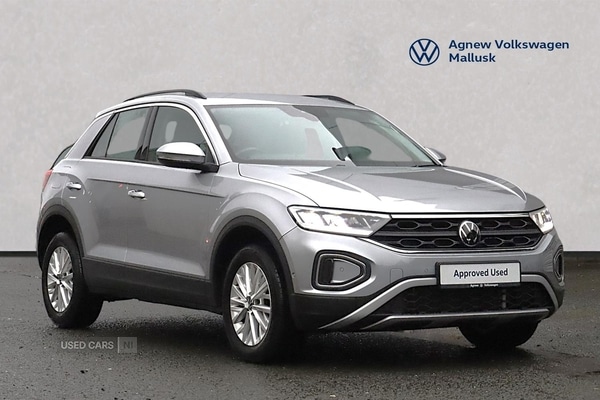 Newtownabbey0 Previous Owners, Agnew Volkswagen Mallusk are delighted to offer this stunning 2022 Volkswagen TRoc Life 1.5 TSI 150PS 6speed Manual 5 Door in Pyrite Silver with "Ready 2 Discover" Media System with Wireless AppConnect for Apple CarPlay and Android Auto LED headlights with high beam assist LED taillights Autodimming rear view mirror Rain sensor Lumbar support in front seats Driver Assistance Pack with Front Assist and Adaptive Cruise Control Leather wrapped multifunction steering wheel