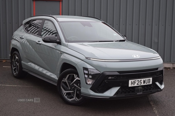 LisburnInsurance Group 16, 1 Previous Owner, The Hyundai KONA 1.6 Hybrid 129 N Line DCT offers a modern driving experience, with just 11,896 miles recorded. Its hybrid powertrain balances efficiency and everyday practicality, complemented by an automatic transmission for smoother journeys. Features such as heated seats and steering wheel, privacy glass, and dualzone climate control enhance comfort for all occupants, making it suitable for a wide range of drivers and lifestyles.Finished in green, the KONA N Line presents a distinctive exterior with gloss black door mirrors, body coloured wheel arch inserts, and a rear roof spoiler with integrated LED brake light. Full LED headlights, LED daytime running lights, and tinted glass contribute to its sophisticated yet functional appearance. The aluminium pedals and N Line cloth upholstery add a touch of sportiness to the wellappointed interior.Inside, the vehicle is equipped with a 12.3inch touchscreen centre console display for navigation, satellite services, and smartphone integration, offering both Apple CarPlay and Android Auto compatibility. The power tailgate, wireless phone charging pad, and flexible 40/20/40 split folding rear seat provide convenience and adaptability for daily needs. Additional amenities include ambient lighting, adjustable head restraints, and practical storage solutions such as seat pockets and a rear centre armrest with cupholders.Specification highlights focus on safety and driver assistance, including forward collision avoidance, lane keep and follow assist, intelligent speed limit assist, and highway drive assist. Parking is made easier with front and rear sensors, a rear camera, and guidance system. Security features include alarm, immobiliser, and keyless entry with a smart key, while stability is supported by electronic stability control, downhill brake control, and tyre pressure monitoring. Speak to our 5* rated dealership for further details or to arrange a viewing