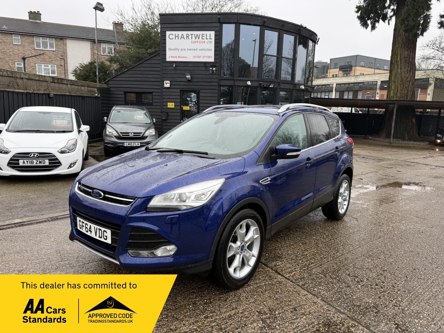 Sudbury2 Previous Owners, Full Service History, Chartwell's are pleased to offer this lovely high spec Ford Kuga Titanium X for sale. Only 2 previous owner from new. The Ford Kuga models are very popular being reliable and offering excellent value for money. This particular car is a great example finished in a lovely metallic blue and only covering 61K miles from new. The car comes with a good service history accompanied by a stamped service book. The last service was on 28/01/2026 at 61,348 miles. In addition to the service we have had a new Cambelt and water pump fitted for the new owner. The current MOT runs until 26/01/2027 passing with 0 advisories. We have had all 4 alloy wheels professionally refurbished. Really nice condition throughout. Drives superb. High spec includes the following, Metallic Paint, 19" Alloys, Electric Glass sunroof, Privacy Glass, Full Leather, Heated front seats, Electric drivers seat, Rear parking sensors, LED running lights, Auto lights, height adjustable seats, Remote locking, Climate control, Air conditioning, Heated Quick clear front screen, Heated rear screen, Electric tailgate, Electric windows, Electric heated mirrors, Cruise control, Steering wheel controls, Rear ISOFIX, DAB Radio CD Player USB AUX and much more. We have the full book pack and 2 remote keys. The car is HPI clear with the printout available. We are an approved AA dealer. All our cars come with free 12 months AA breakdown cover. Driveaway insurance is now offered through the AA. Our cars (not commercial) come with a 3month/ 3000 miles warranty as standard unless explicitly sold as a trade sale. We do offer extended warranties through WarrantyWise for 6 months 2year terms. For more information please call us.