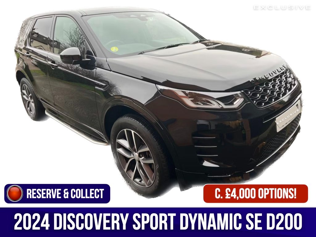 0 Previous Owners, Full Franchise Service History, We are delighted to present this 1 owner, Discovery Sport Dynamic SE (facelift) benefitting from c. £4,170 worth of optional extras such as: Santorini black paintwork, side steps, deployable tow bar (unusued), heated steering wheel, drivers assist pack (which includes adaptive cruise control, blind spot monitor, rear traffic and collision monitor) and more! | FULL LAND ROVER SERVICE HISTORY AND LAND ROVER WARRANTY UNTIL 02/2027 WHICH CAN BE FURTHER EXTENDED |This vehicle has a lovely specification including 19" alloys, panoramic roof, Meridian sound sytem, heated seats, heated steering wheel, blind spot monitoring, memory seats, black exterior pack and much more. | Powered by a 2.0L Diesel engine and featuring Four Wheel Drive, this Euro 6 compliant model offers a towing weight of 2500 kg. The Dynamic SE trim ensures a well appointed interior, enhanced by a heated steering wheel and heated front seats for comfort. Practicality is further boosted by a wireless device charging pad and an electrically deployable towbar, all housed within a vehicle offering generous boot space. | This Discovery Sport is designed to impress, accelerating from 0 to 60 mph in a swift 8.1 seconds, demonstrating its strong performance. The inclusion of the Driver Assist Pack, featuring Blind Spot Assistance, highlights how this vehicle offers enhanced safety and awareness compared to others. These carefully selected features and its excellent provenance make this 2024 Discovery Sport a compelling choice for those seeking a premium and well maintained SUV. |