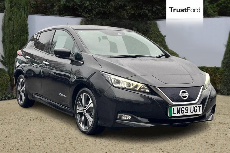 Wimbledon7 Combimeter, 8 touchscreen navigation and entertainment system, Apple car play/Android Auto, Blind spot intervention, Blind spot warning, E Pedal, eCall emergency call system, Intelligent Cruise control (ICC), Intelligent lane intervention, Lane departure warning system, Nissan connect services with nav, Push button starter, Rear cross traffic alert, Speed limiter, Speed sensitive power steering, Telematics system, Trip computer, Voice control system, Auto dimming rear view mirror, Automatic activation of hazard warning lights, Automatic rain sensing wipers, Body colour mirror caps, Chrome door handles, Electric front/rear windows, Electrically adjustable and folding door mirrors, Follow me home headlights, Gloss black finish B pillar, High beam assist, Illuminated charge port, Integrated turn signals in mirrors, Intelligent auto headlights, LED signature daytime running lights, LED tail light signature, LED third brake light, Metallic blue rear bumper accent, Rain sensor, Rear privacy glass, Rear side wing doors, Rear wiper, Shark fin antenna, 12V socket, 3 seat bench in 2nd row, 50kW Quick Charger Capacity, 60/40 split folding rear seat, Automatic air conditioning with timer and heater, Front centre console and armrest, Front head restraints, Front seatback pockets, Heat pump, Height adjustable driver seat, Isofix child seat anchor points, Leather steering wheel, Leather/ultra suede upholstery, Manual adjust driver/passenger seats, PTC (Positive Temp Coefficent) heater,
