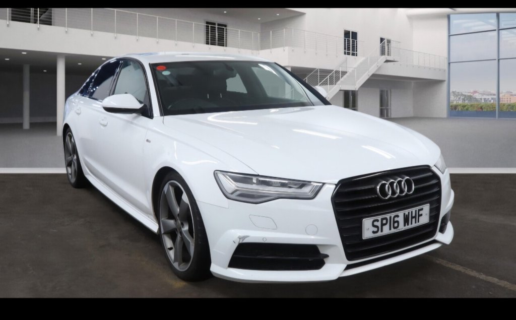 Stockport2 Previous Owners, WE AT FM3 CARS WOULD LIKE TO OFFER YOU ANOTHER EXCELLENT AUDI A6 2.0 TDI Ultra Black Edition Saloon, 4 Door, Diesel, S Tronic, Euro 6 (s/s) (190 ps), Finished in Metallic White With Black Leather Interior, Front Sport Heated Seats, LED Headlight, High Beam Assist, Technology Pack, 2 Keys, Service History, Dual Zone Climate Control, 2 former Keeper, SAT NAV, Audi Multimedia, Bluetooth, DAB, Radio, 20" Alloys, Privacy Glass, Excellent Drive, Great looking car, Uk Main Land Delivery and Finance Options Available, Reserve this car today with £199 deposit. All of our cars come provided with a service and MOT. HPI reports are available for all vehicles. Warranties available, subject to suit each individual vehicle. We partner with a wide variety of finance companies, decisions can be made within 60 seconds. Drive your dream car away within 1hour. 5 day drive away insurance available at an additional cost. All part exchanges welcome. Tel; 0161 487 1007. We do take great care in describing the vehicle, its features and history, but errors can be made. Please feel free to ask the sales staff for any particular feature or detail you are not sure about before purchase, as this can not be rectified after purchase. .20in Alloy Wheels 5TwinSpoke Design in Matt Titanium Look Gloss Turned Finish, 4Way Electric Lumbar Support, ABS AntiLock Braking System, AMI Audi Music Interface, AUXIN Socket, Acoustic Glazing, Airbags, AllLED Headlights with HighBeam Assist, AluminiumEffect BootlidTailgate Trim, Anti Theft Locking Wheel Bolts, AntiTheft Alarm, Audi Drive Select, Audi Hill Hold Assist, Audi Parking System Plus, AutoDimming RearView Mirror, BOSE Surround Sound System, Black Styling Package, Bluetooth Interface, Body Coloured Door Mirrors, Cruise Control, Deluxe 4Zone Automatic Climate Control, Door Mirrors HeatedElectrically AdjustableFolding with Memory Function, Door Sill Trims with S Line Logo, Door Trim Inserts Alcantara, Drivers Information System DIS, ESC Electronic Stabilisation Control, Electric Windows Front and Rear, Electrically Adjustable Front Seats with Memory Function for Drivers Side, Electromechanical Parking Brake, Front Centre Armrest, Front Passenger Airbag Deactivation Switch, Front and Rear Floor Mats, Gear Lever Knob in Black Perforated Leather, Headlight Washer System, Heated Front Seats, High Gloss Package, HighBeam Assist, ISOFIX Child Seat Mounting, Inlays Piano Finish Black, Keyless Go, LED Rear Lights, Light and Rain Sensor, MMI Navigation SD Card Based, MMI Radio Plus and DAB, NonSmoking Package, Platinum Grey Diffuser Insert, Platinum Grey S line Single Frame Grille with Dual Struts in Chrome, Power Steering, Privacy Glass, Remote Central Locking, S Line Badges on Front Wings, S line Front and Rear BumpersSide Ventilation Grilles and Side Skirts, Seat Belt Monitoring, Space Saver Spare Wheel, SplitFolding Rear Seats, Sport Suspension, Steering Wheel 3Spoke LeatherMultifunctionFlat BottomedShift Paddles, Tool Kit Warning Triangle and Car Jack, Tow Bar Bracket Preparation, Tyre Pressure Loss Indicator