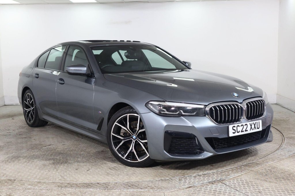 BuryInsurance Group 37, 0 Previous Owners, This 2022 BMW 5 Series 520i M Sport presents an exceptional ownership proposition, having been driven only 27,411 miles by a single owner. This Euro 6 compliant model boasts a 2.0 litre petrol hybrid engine, offering an efficient and responsive driving experience. The M Sport trim enhances its dynamic appeal, while the inclusion of an electric glass sunroof, BMW Connected Package Professional with Android Auto and Apple CarPlay, and a comprehensive Parking Assistant featuring front and rear sensors along with a rear camera, ensure both comfort and convenience. Further enhancing this already impressive vehicle are its automatic two zone climate control and electric memory seats, providing personalised comfort for every journey. The generous boot space is a practical highlight, making it ideal for everyday use and longer trips alike. These carefully selected features and the excellent provenance of this BMW 5 Series demonstrate its superior quality and desirability compared to other vehicles in its class..19in Alloy Wheels M Light YSpoke Style 845 Bicolour Jet Black with Mixed Tyres, 32GB Hard Disc Drive HDD Memory, Active Air Stream Kidney Grille High Gloss Black, Active Guard, Air Conditioning Automatic TwoZone, Airbags, Alarm System Thatcham 1 with Remote Control and Engine Immobiliser, All Round AntiCorrosion System, Ambient Lighting, Armrests, Automatic StartStop Button, Automatic Windscreen Wiper and Headlights, BMW Connected Package Professional, BMW ConnectedDrive Online Services, BMW Individual Headliner Anthracite, BMW Individual HighGloss Shadowline, BMW Live Cockpit Professional, BMW TeleServices, Brake Pad Wear Indicator, Child Seat ISOFIX Attachment Outer Rear Seats includes Top Tether, Chrome Trim, Crash Sensor Activating Central Locking Hazard Warning Lights Fuel Cut Off Interior Lights, Cruise Control, Cup Holders Front x2 and Rear x2, DAB Digital Radio, DSC Dynamic Stability Control Stabilises the Vehicle in Extreme Situations Controls Traction, Daytime Running Lights LED, Deformation Zones Front and Rear, Drive Performance Control with ECO PRO Comfort and Sport Modes, Driving Experience Switch, Dynamic Brake Lights, EPS Electric Power Steering with Servotronic, Electric Memory Seats, Electric Windows Front and Rear with OpenClose Fingertip Control AntiTrap Facility and Comfort Closing Function, ElectroMechanical Parking Brake with Automatic DriveAway Release and AutoHold Function, Engine Cover with TwinPower Turbo Designation, Exhaust Tailpipe Visible Trapezoidal, Expanded Exterior Mirror Package, Exterior Door Handle Illumination, Exterior Mirrors Electrically Adjustable and Heated Includes Integrated Direction Indicators and Automatic Parking Function, Favourite Buttons, First Aid Kit and Warning Triangle, Floor Mats Velour, Follow Me Home Headlight Function, Footwell Lights Front and Rear, Glove Compartment Lockable and Illuminated, Head Restraints Front AntiWhiplash, Instrument Panel in Sensatec Artificial Leather, Intelligent Emergency Call, Interior Lighting, Interior RearView Mirror with Automatic AntiDazzle Function, Interior Trim Aluminium Rhombicle Smoke Grey with Highlight Trim Finisher Pearl Chrome, LED Headlights, Locking Wheel Bolts, Lumbar Support Driver and Front Passenger, M Aerodynamics Package, M Designation on Front Side Panels Left and Right Chrome, M Door Sill Finishers, M Leather Steering Wheel, M Specific Floor Mats, M Specific Pedals,