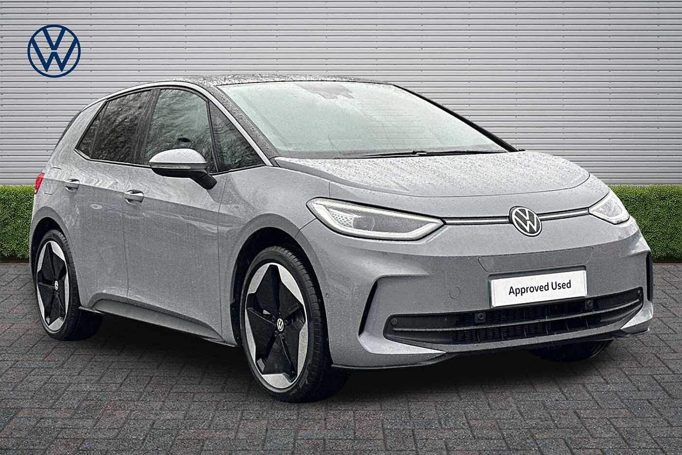 ExDemo, Insurance Group 29, 0 Previous Owners, Franchise Approved, Available from 30/04/2026. Volkswagen ID.3 Hatchback 150kW Match Pro S 79kWh 5dr Auto (5 Seats) in Moonstone Grey. Specification Includes Exterior Features,Automatically front heated washer nozzles,Front and rear electric windows,Heat insulating windscreen,Heated windscreen washer jets,Rain sensor,Rear tinted glass from Bpillar backwards approx 65% tinted,Rear wiper,Variable front intermittent wipers,Body colour door handles,Body coloured bumpers,Rear side wing doors,Advanced dynamic light assist for LED matrix headlights,Automatic headlights,LED 3rd brake lamp,Separate LED daytime running lights which also perform the indicator function,Welcome light,Safety,Antilock braking system (ABS),Autonomous emergency braking front assist with pedestrian and cyclist monitoring,Disc brakes in front,Electronic parking brake with auto hold,Electronic Stability Programme (ESP),Traction control with on/off button,Adaptive cruise control,Advanced driver attention and drowsiness monitor,Dynamic road sign display,Lane assist,Oncoming vehicle braking when turning including swerve support,Predictive speed limiter,Auto dimming rear view mirror,Remote electrically foldable door mirrors puddle lights and reverse activated passenger's door mirror,3 rear 3 point seatbelts,Centre airbag,Child locks on rear doors,Driver and front passenger airbags,Front and rear curtain airbags,Front passenger airbag deactivation,Front side airbags,Single tone horn,Tyre pressure loss indicator,Audio / Communications,Bluetooth connectivity,Car2X intelligent vehicle networking,Ecall,ESim card for online connectivity,Natural voice control,Wireless app connect,Wireless Smartphone charger,2 USB C ports in front 2 USB charging sockets on the centre console in the rear charging capacity upto 45W,DAB Digital radio,Front speakers,Gaming platform via car app,Miscellaneous,Discover pro navigation with 12.9in screen,Preparation for navigation system with media and internet package,Trip computer,Warning signal and warning light for front and rear seatbelts not fastened,Battery 320 A (49 Ah),Standard electronic engine sound actuator,Interior Features,Air Care climatronic 2 zone air conditioning,Electric auxiliary air heater,Centre console with illuminated storage compartment with sliding cover and two drinks holders,Front armrests,Leather wrapped multifunction heated steering wheel with touch control,Play and Pause brake and accelerator pedals,Reach + rake adjustable steering column,Taia cloth