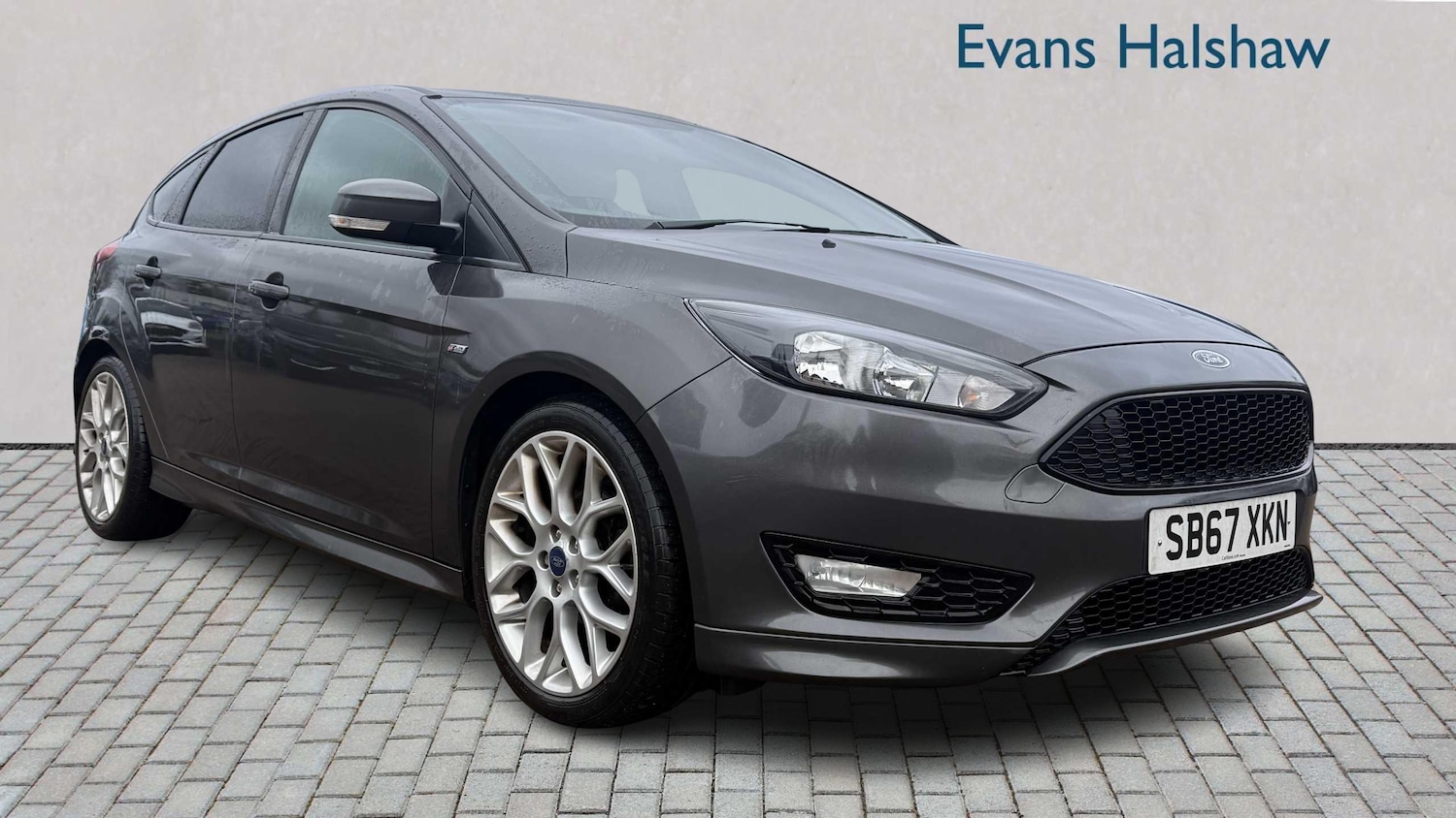 Greater ManchesterInsurance Group 16, 17in Alloy Wheels Rock Metallic Finish, Black Exterior Trim Detailing including Upper Door Line and Headlamp Surround, Body Colour Large Rear Spoiler and Side Skirts, Body Coloured Front Styling Kit with Centre Aero Foil, Door Mirrors Heated Electric Integrated Side Indicators Body Coloured, Locking Wheel Nuts, Quickclear Heated Front Windscreen with Heated Washer Jets, Rear Bumper with Integral Body Coloured Diffuser and Honeycomb Mesh in HighGloss Black, ST Line Stainless Steel Scuff Plates, Spare Wheel Mini Steel, Upper and Lower Grille High Gloss Black Honeycomb Design, Windows Electrically Operated Front with One Touch Lowering on Drivers Side, Wipers Standard with 6 Speed Interval Settings, Airbags Driver and Front Passenger, Airbags Front Side Impact, Airbags Front and Rear Side Curtain, Alarm Thatcham Category 1 with Volume Sensing and Perimeter, AntiLock Braking System ABS with Electronic Brake Force Distribution EBD, Electronic Stability Programme ESP with Traction Control and Emergency Brake Assist EBA, Emergency Brake Warning Automatic Hazard Warning Lights, Ford EasyFuel Capless Refuelling System, Hill Start Assist, IPS Intelligent Protection System, Remote CentralDouble Locking, Seats ISOFIX Mounting Provision for Child Seats, TVC Torque Vectoring Control, Air Conditioning Manual, Centre Console Premium with Sliding Armrest Covered Stowage Bins, Courtesy Light Front and Rear Passengers Overhead Halogen and Load Compartment, Drivers Seat Lumbar Adjust, Ford Power Starter Button, Front Floor Mats, Front Seat Drivers Manual Height and ForeAft Adjustment, Front Seat Passenger Manual ForeAft Adjustment, Front Seats Sports Style, Gearshift Knob Leather, Headliner Black Woven, Keyless Start, LeatherTrimmed Handbrake, MyKey, Sports Style Pedals Gear Knob and Steering Wheel, Steering Column Rake and Reach Adjustment, Steering Wheel 3spoke Flat Bottom Leather Trimmed, Colour TFT Instrument Cluster Display, EPAS Electric Power Assisted Steering, Ford Eco Mode Driver Information System, Ford SYNC3 DAB Navigation System, Front Fog Lights, Front Suspension Independent with MacPherson Struts and AntiRoll Bar, Halogen Headlights with Black Surround, Headlights Courtesy Delay, LED Daytime Running Lights, Rear Lights LED, Rear Suspension Independent Control Blade MultiLink System and AntiRoll Bar, SYNC3 with 8in Touchscreen DAB Audio System, Suspension Sports,