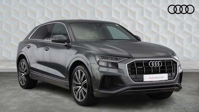 Insurance Group 48, 0 Previous Owners, Audi Q8 S line 55 TFSI quattro 340 PS tiptronic (ULEZ) registration MD72HPK, 44,000 miles. Powerful, refined and effortlessly capable, this oneowner Q8 pairs the 340 PS petrol V6 with smooth tiptronic and quattro allwheel drive. It comes with part Audi Approved service history, most recently receiving new spark plugs at 43,936 miles, plus an oil change service and brake fluid change at 40,156 miles for total peace of mind. Specification highlights include the 360degree camera for easy manoeuvring, 21 alloy wheels, adaptive air suspension for a composed ride, heated seats, parking sensors, satellite navigation, Bluetooth, Apple CarPlay and Android Auto. As an S line, you also benefit from striking exterior styling and a beautifully finished interior.When you purchase this car from Mon Motors Cardiff Audi, you gain the benefits of the Audi Approved Used scheme, including a minimum 12month Warranty and 12 months Roadside Assistance. If under three years old the car is covered by Audi s original 36month manufacturer warranty with the remaining term equal to 36 months minus the vehicle s age; vehicles over three years come with a minimum 12month warranty. This Q8 has passed over 150 meticulous checks by our Audi technicians and is available for immediate delivery.Buy with confidence from Mon Motors Cardiff Audi, an official Audi franchise retailer. Expect expert product knowledge, manufacturertrained technicians using genuine Audi parts, transparent pricing and tailored finance solutions. We welcome partexchange, can arrange nationwide delivery, and are happy to provide personalised videos and test drives. Experience premium service and drive away in an exceptional Audi Q8 today. 21 x 10.0J '5Vspoke' design alloy wheels in contrasting grey with gloss turned finish with 285/45 R21 tyres, Intelligent park assist, S line profile, 360o?camera, Valcona leather for Sport Seats with 'S' embossed logo, Parking Assist with Parking aid plus, S line Exterior package, HD Matrix LED headlights and dynamic front and rear indicators with coming and leaving home animations, Multicoloured Extended LED Interior Lighting Pack, Front Sport Seats, Stainless steel pedals and footrest, Door sill trims with aluminium inlays front illuminated S logo, Comfort and Sound Pack, S line Sport package, S line bumpers in body colour (full paint finish), Loading edge protection in stainless steel, Model and technology designation at rear, Rear?bench seat?plus,