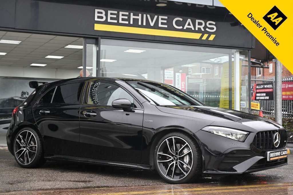 Horwich2 Previous Owners, Boasting exceptionally low mileage for a 2024 model, this Mercedes Benz A Class A35h AMG Touring Edition presents a superb opportunity. This four wheel drive, Euro 6 compliant vehicle is powered by a 2.0 litre petrol hybrid engine, offering a blend of efficiency and performance. With a clear vehicle history check, you can be assured of its excellent provenance. Inside, you will find a host of modern conveniences, including smartphone integration with both Android Auto and Apple CarPlay, and convenient wireless charging. The THERMOTRONIC luxury automatic climate control with two zones ensures comfort for all occupants, while Blind Spot Assist and automatic headlamp activation provide added safety and ease of driving. Experience exhilarating performance with this AMG Touring Edition, capable of accelerating from 0 to 60 miles per hour in a swift 4.7 seconds, a figure that sets it apart from many other vehicles in its class. The generous boot space is another highlight, offering practicality for everyday use and longer journeys, further enhancing its appeal compared to similar models. This Mercedes Benz A Class combines dynamic driving with sophisticated technology and ample room, making it a truly compelling choice. BEEHIVE CARS IS A FAMILY RUN BUSINESS ALL OUR CARS ARE HAND PICKED, INDEPENDENTLY INSPECTED AND SOLD TO GUARANTEED RETAIL STANDARDS. **WE INCLUDE MOT + HPI REPORT + WARRANTY + FULLY VALETED + 12 MONTHS FREE AA BREAKDOWN COVER + 5 DAYS DRIVEAWAY INSURANCE**. TRAIN STATION OR BUS STATION PICK UP IF COMING BY PUBLIC TRANSPORT. NATIONWIDE DELIVERY AND FINANCE PACKAGES AVAILABLE WE RECOMMEND YOU BOOK YOUR VIEWING AND SECURE IT WITH A £100 DEPOSIT. **T & Cs Apply .19in Alloy Wheels AMG CrossSpoke Design Painted in Matt Black with a HighSheen Rim Flange, ABS AntiLock Braking System with BAS Brake Assist, Active Bonnet Pedestrian Safety Measure which Detects an Impact and Raises Bonnet by 65mm, Active Brake ASSIST, Active Lane Keeping Assist, Adaptive Brake Assist with Hold Function and Hill Start Assist, Adaptive Brake Lights, Air Conditioning Air Vents Black with Surround in Silver Chrome, Air Conditioning THERMOTRONIC Luxury Automatic Climate Control TwoZone with Display, Airbag Kneebag for Driver, Airbags Dual Stage Driver and Front Passenger, Airbags Head and Sidebags Driver and Front Passenger, Airbags Windowbags for Driver and Front Passenger, Alarm System with Immobiliser and Interior Protection Thatcham Category 1, AMG Aerodynamics Package, AMG Bodystyling AMG Front Apron with Front Splitter and AMG Rear Apron with Visible Tailpipe Trim Elements, AMG Night Package, AMG Night Package II, AMG Spoiler Lip on the Roof Spoiler, AMG Suspension, ATTENTION Assist, Automatic Child Seat Recognition Sensor, Beltline Strips High Gloss Black, Blind Spot Assist, Bodystyling Side Skirts BodyColoured, Bonnet with Power Domes, Brake Calipers with AMG Lettering on Front, BrakePad Wear Warning Indicator, Brakes Perforated Front Brake Discs, Brushed Stainless Steel Sports Pedals with Rubber Studs, Bumpers Body Coloured, Car Wash Mode, Centre Armrest Front with Stowage, Childproof Locks Manually Operated for Rear Doors and Electrically Operated for Rear Power Windows, Collision Prevention Assist, CrashResponsive Emergency Lighting, Cruise Control with Limiter, Cup Holder Twin Front, DAB Digital Radio Tuner, Digital Extras Remote and Navigation Services, Digital Extras Standard Services, DirectSteer System, Door Handles Body Coloured, Door Mirrors Electrically Adjustable and Heated with Integrated LED Indicators, Door Sills Front Door Sills with AMG Lettering, Driving Modes DYNAMIC SELECT with Drive Programs Slippery Comfort Sport Sport Plus Individual, Dual Bluetooth Interfaces, Electric Parking Brake, Electric Windows 4, ESP Electronic Stability Programme with ASR Acceleration Skid Control, ESP Curve Dynamic Assist, Exhaust System AMG Sports Exhaust System with Two Round Tailpipes Attached to the Rear Apron, Exhaust System Rear Apron with Specific Diffuser Look x4 Vertical Fins x2 90mm Round ChromePlated Tailpipe Trim Elements, Fingerpri