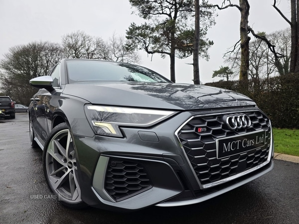 Crumlin1 Previous Owner, BEAUTIFUL EXAMPLE OF AN IMMACULATE AUDI S3 SALOON FINISHED IN DAYTONA GREY METALLIC! GREAT SPEC! £3815 FACTORY EXTRAS AND A FULL AUDI SERVICE HISTORY, SPEC INCLUDES. PAN ROOF, FACTORY 19 INCH TRAPEZOID ALLOYS, FINE NAPPA LEATHER WITH S EMBOSSING, COMFORT & SOUND PACK, FACTORY RED BRAKE CALIPERS, 4 WAY LUMBAR SUPPORT SEATSREAR CAMERA, MATRIX LIGHTS, VIRTUAL DASH, APPLE CAR PLAY/ANDROID AUTO, HEATED SEATS & MUCH MORE. JUST HAD 4 NEW CONTINENTAL CONTI SPORT TYRESPLEASE PHONE BEFORE TRAVELLING TO ARRANGE AN APPOINTMENT TO INSURE THERE IS A MEMBER OF STAFF ON SITE TO DEAL WITH YOU ON ARRIVALVIEWING 7 DAYS A WEEKPLEASE PHONE TO DISCUSS TRADE IN OPTIONS BEFORE TRAVELLINGOPTIONAL 6, 12, 24, 36 MONTHS COMPREHENSIVE WARRANTY OPTIONS, HUGE COVER, COURTESY COVER, HOTEL COVER AND FULL AA ROAD SIDE ASSISTANTSCLICK SEE ALL ADDS TO VIEW ALL OUR STOCKEXCELLENT FINANCE PACKAGES AVAILABLE, SUBJECT TO STATUS!POOR CREDIT APPLICATIONS WELCOMEFAST, EASY & FRIENDLY SERVICECONTACT DIRECTLY FOR FINANCE QUOTETRADE INS WELCOME, INLUDING HIGHER VALUE VEHICLESALL MAJOR CREDIT & DEBIT CARDS ACCEPTED, CHARGES APPLYBUY WITH CONFIDENCE AT MCT CARS LTD! DEALER LEVER DIAGNOSTICS ON SITE! ALL CARS COME FULLY CHECKED OVER IN OUR WORK SHOP!ALL CARS HPI CLEAR WITH PAGE COMPREHENSIVE PRINT OUT ON REQUESTALL CARS DVA MILEAGE CHECKEDGENUINE WARRANTED MILEAGEOTHER CARS, JEEPS AND MPV'S IN STOCKIn all its a great vehicle, it is mechanically perfect. Any inspection is welcome. Vehicle is exactly how you see it and how it is described!