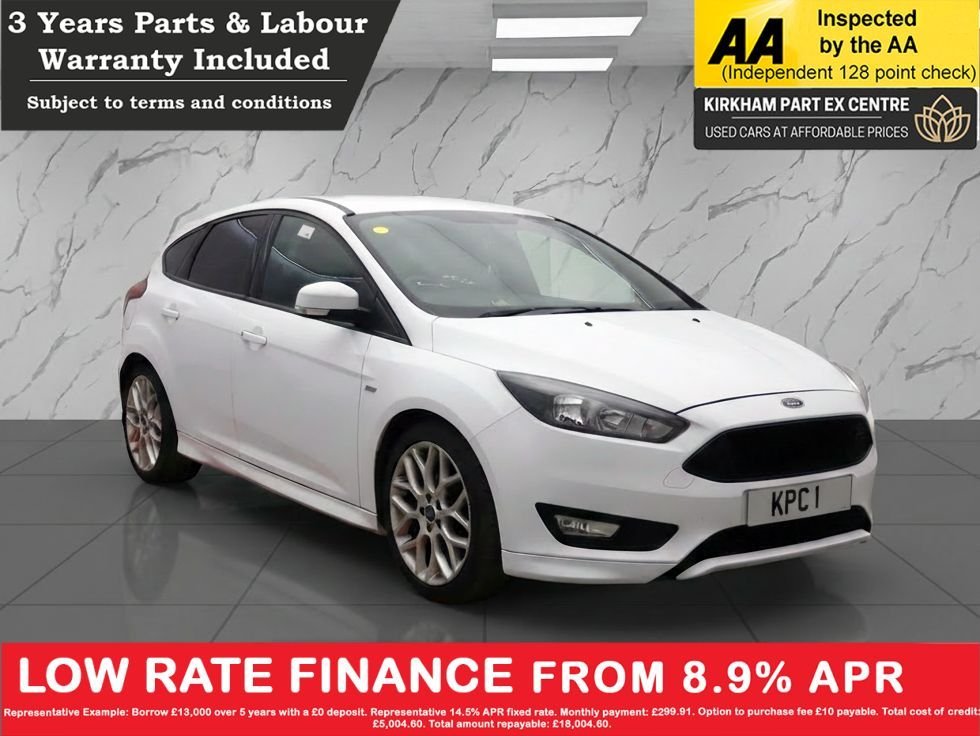 PrestonsInsurance Group 16, Welcome to Kirkham Part Exchange Centre ? Where Excellence Meets Value At Kirkham PX Centre, we don?t just sell cars ? we deliver a premium experience. Each vehicle is handpicked and undergoes a full mechanical inspection and diagnostic health check. For diesel models, we carry out professional DPF regeneration to ensure optimal performance and reliability. Every car includes a 1Year Nationwide Parts & Labour Warranty backed by Autoguard Warranties LTD, with upgrade options available. We offer competitive finance through trusted outofhouse lenders, tailored to your needs and budget. Some vehicles are priced below market value ? not due to lower quality, but because we pass our buying power directly on to you. From exceptional prep standards to unbeatable aftersales care, every detail is designed with you in mind. Discover why customers across the North West trust Kirkham PX Centre for quality, value, and service that goes the extra mile ? without the main dealer price tag..Air Conditioning Manual, Airbags Driver and Front Passenger, Airbags Front Side Impact, Airbags Front and Rear Side Curtain, Alarm Thatcham Category 1 with Volume Sensing and Perimeter, AntiLock Braking System ABS with Electronic Brake Force Distribution EBD, Black Exterior Trim Detailing including Upper Door Line and Headlamp Surround, Body Colour Large Rear Spoiler and Side Skirts, Body Coloured Front Styling Kit with Centre Aero Foil, Centre Console Premium with Sliding Armrest Covered Stowage Bins, 18in Alloy Wheels STLine Rock Metallic, Colour TFT Instrument Cluster Display, Courtesy Light Front and Rear Passengers Overhead Halogen and Load Compartment, Door Mirrors Heated Electric Integrated Side Indicators Body Coloured, Drivers Seat Lumbar Adjust, EPAS Electric Power Assisted Steering, Electronic Stability Programme ESP with Traction Control and Emergency Brake Assist EBA, Emergency Brake Warning Automatic Hazard Warning Lights, Ford EasyFuel Capless Refuelling System, Ford Eco Mode Driver Information System, Ford Power Starter Button, Ford SYNC3 DAB Navigation System, Front Floor Mats, Front Fog Lights, Front Seat Drivers Manual Height and ForeAft Adjustment, Door Edge Protectors, Front Seat Passenger Manual ForeAft Adjustment, Appearance Pack 2, Rear Privacy Glass, Front Seats Sports Style, Driver Assistance Pack, Frozen White, Front Suspension Independent with MacPherson Struts and AntiRoll Bar, Gearshift Knob Leather, Halogen Headlights with Black Surround, Headlights Courtesy Delay, Headliner Black Woven, Parking Distance Sensors Rear, Hill Start Assist, IPS Intelligent Protection System, Keyless Start, LED Daytime Running Lights, LeatherTrimmed Handbrake, Locking Wheel Nuts, MyKey, Quickclear Heated Front Windscreen with Heated Washer Jets, Rear Bumper with Integral Body Coloured Diffuser and Honeycomb Mesh in HighGloss Black, Convenience Pack, Rear Lights LED, Rear Suspension Independent Control Blade MultiLink System and AntiRoll Bar, Remote CentralDouble Locking, ST Line Stainless Steel Scuff Plates, SYNC3 with 8in Touchscreen DAB Audio System, Seats ISOFIX Mounting Provision for Child Seats, Spare Wheel Mini Steel, Sports Style Pedals Gear Knob and Steering Wheel, Steering Column Rake and Reach Adjustment, Steering Wheel 3spoke Flat Bottom Leather Trimmed, Suspension Sports, TVC Torque Vectoring Control, Trip Computer, Tyre Pressure Monitoring
