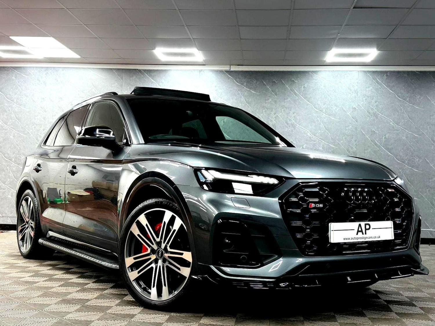 Bradford1 Previous Owner, Full Franchise Service History, AUTOPRESTIGE HOME OF THE FINEST SELECTION OF BESPOKE PERFORMANCE AND PRESTIGE VEHICLES..BUY WITH COMPLETE CONFIDENCE...WE ARE PLEASED TO PRESENT ANOTHER STUNNING AUDI SQ5 VORSPRUNG STYLE SPEC FINISHED IN AUDI EXCLUSIVE OPTIONAL EXTRA, RARE METALLIC DAYTONA GREY OVER BLACK 3 STAGE HEATED ELECTRIC MASSAGE QUILTED FINE NAPPA LEATHER SEMBOSSED SPORTS SEATS BACKED BY A FULL AUDI SERVICE HISTORY AND ONLY 1 PREVIOUS OWNER NO EXPENSE FOR NEW KEEPER READY TO DRIVE AWAY IN PRISTINE CONDITION STILL HAS FRESH LEATHER SMELL ONE OF THE HIGHEST SPECCED SQ5'S AVAILABLE WITH ALMOST EVERY DESIRED EXTRA FROM FACTORY , IF YOUR AFTER A STEALTHY LOOKING SQ5 WITH THE PERFECT UPGRADES, THIS IS THE ONE WITH UPGRADES INCLUDING EXTENDED FRONT SPLITTER IN GLOSS BLACK,BLACK BADGES,SMOKED PPF FRONT LIGHTS,SATIN BLACK RAPTOR SIDESTEPS,EXTENDED GLOSS TOP ROOF SPOILER,EXTENDED GLOSS BLACK MIDDLE BOOT SPOILER AND SMOKED PPF FRONT HEADLIGHTS...AS EVIDENT, THIS IS NOT YOUR STANDARD SQ5, ARGUEBALY ONE OF THE BEST LOOKING SQ5 AVAILABLE WITH A RARE EXTREMELY HIGH SPECIFICATION YOU WILL NOT FIND ANOTHER SQ5 IN THIS CONDITION WITH A FULL COMPLETE AUDI SERVICE HISTORYOUR SQ5 COMES PACKED WITH FACTORY FITTED EXTRAS WHICH INCLUDE, FULL BLACK EDITION SPEC/EXTERIOR BLACK OPTICS PACK,21" AUDI SPORT ALLOYS FINISHED IN 2TONE DIAMOND FINISH (IN IMMACULATE CONDITON) OVER CANDY RED S CALIPERS,PRIVACY GLASS,SLIDING PANORAMIC GLASS SUNROOF WITH AUTO BLIND,ALUMINIUM INLAYS,COMFORT AND SOUND PACK,RARE MASSAGE FULL FINE NAPPA LEATHER SEATS,ADAPTIVE SPORTS SUSPENSION,DYNAMIC STEERING,QUATTRO WITH SPORTS DIFF,SPORTS EXCHAUST,MATRIX LED LIGHTS,COMFORT ACCESS,TECH PACK 360 CAMERAS,KEYLESS ENTRY/GO,PUSH BUTTON START,BANG & OLUFSEN 3D SURROUND SOUND,HILL HOLD ASSIST,AUDI VIRTUAL COCKPIT WITH SELECTIVE DISPLAYS,CRUISE CONTROL,FLATBOTTOM SQ5 STEERING WHEEL,HEATED ELECTRIC AUTODIMMING FOLDING WING MIRRORS WITH GLOSS BLACK CAPS,REAR VIEW CAMERA,WIRELESS APPLE CARPLAY AND PHONE CHARGE,EXTENDED MULTICOLOURED LED INTERIOR AMBIENT LIGHTING,POWER OPERATED TAILGATE,HIGH BEAM ASSIST,BT AUDIO,USB AUDIO..2 KEYS
