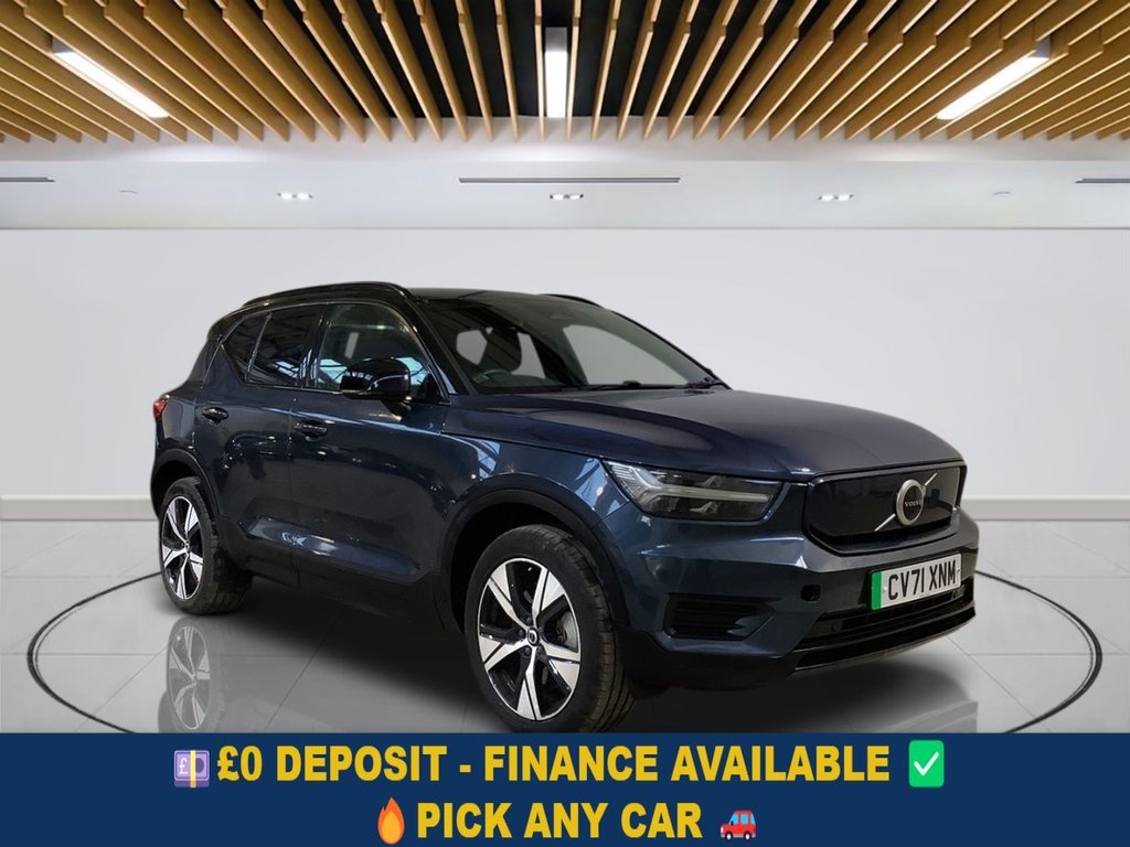 Aylesbury0 Previous Owners, Why This Volvo XC40 Wins? This 2021 Volvo XC40 is an outstanding oneowner example with remarkably low mileage of just 31,400 miles. As an allelectric Four Wheel Drive model, it combines smooth, quiet driving with impressive performance, powered by a 78kWh battery that delivers up to 262 miles of range when new. The XC40 accelerates from 060mph in just 4.7 seconds, demonstrating the dynamic capability that sets it apart in the premium electric SUV segment. Inside, the cabin blends Scandinavian design with thoughtful technology. The Connect TextileMicrotech upholstery in Charcoal exudes style, while features like Wireless Inductive Mobile Phone Charging, 2Zone Electronic Climate Control with Rear Air Vents, and the CleanZone Air Quality System ensure comfort for all occupants. Rear Park Assist simplifies manoeuvring, and Keyless Drive Plus with Handsfree Tailgate OpeningClosing adds modern convenience for everyday use. The generous boot space enhances practicality, making this XC40 ideal for shopping, luggage, or weekend trips. Charging is flexible: a full home charge on a 7kW wallbox takes around 12 hours, while rapid public charging replenishes the battery from empty to 80% in just 40 minutes. Your Peace of Mind? Clear vehicle history check Optional 336month extendable warranties Free 12month AA roadside assistance Fully prepared to showroom standard with its existing MOT and servicing, and we can organise any further MOT or service enhancements at your request. Drive Away, Insurance Available No hidden or extra costs, like admin fees Autotraders 2024 Insights: Top 3 XC40 Buyer Priorities: Dynamic allelectric performance with AWD capability Premium, techrich interior for comfort and convenience Practical SUV space with ample storage and versatility This XC40 delivers across the board. Its rapid acceleration and smooth electric drive provide a thrilling experience, while the techpacked, comfortable cabin and spacious boot make it a practical choice for everyday life. Combine this with Volvos signature safety and design, and you get a premium electric SUV thats efficient, stylish, and highly versatile. StressFree Next Steps: Free Part Exchange Valuation £0 Deposit Car Finance Includes free credit checker Reserve for £99 Fully refundable.12V Socket Front Tunnel Console and Cargo Compartment, 9in Centre Console Portrait Touch Screen, Bluetooth Handsfree System, DAB Digital Audio Broadcasting Radio, Google Automotive Services, Roof Antenna, Sensus Connect with High Performance Sound, Volvo Cars Services with App, WirelessInductive Mobile Phone Charging, 19in Alloy Wheels 5 Spoke Diamond Cut High Gloss Black, Autofolding Heated Power Door Mirrors, Black Stone Door Mirrors, Black Stone Roof, Colour CoOrdinated Front Covered Grille and Surround, Dark Tinted Windows Rear Side Windows and Cargo Area, Embossed Rear Side Roof Pillar, Front and Rear Power Windows, High Gloss Black Deco Lower Front Bumper, High Gloss Black Window Trim Surround, Locking Wheel Nuts, Roof Rails Integrated High Gloss Black, Roof Spoiler, Tyre Sealant Kit and Compressor, 12.3 Progressive Driver Display, 2Zone Electronic Climate Control with Rear Air Vents CleanZone Air Quality System with Pollen Filter, 3Spoke Tailored Sports Steering Wheel, APillar Parking Ticket Holder, Autodimming Interior Mirror, Centre Console Cupholders and Storage, Convenient Entry and Start, Cutting Edge Aluminium Inlays, Flexible Load Floor with Grocery Bag Holder, Floor Mats, Front Load Compartment 31 Litres, Front Seat Cushion Extensions, Front Tunnel Pocket and Integrated Waste Bin, Glovebox Bag Hook, Height and Reach Adjustable Steering Column, Height and Tilt Adjustable Driver Seat, High Gloss Black Centre Tunnel and Centre Screen Surround Deco, Illuminated Vanity Mirrors with Ticket Holder, Load Protection Net, MultiDirectional Lumbar Support, Multicolour Theatre Lighting, Power Operated Tailgate, Rain Sensor Automatic Windscreen Wiper Activation, Rear Armrest with Storage and Cupholders, Rear Clothes Hook, Recharge Tread Plates Front, Seats Passenger Height Adjustment, Sports Pedals, Steering Wheel Remote Infotainment Controls, Tailored Gearknob, Underfloor Cargo Storage, Versatile Split Folding Rear Seats 6040, 7m 10amp Charge Cable with 3Pin Plug and 4.5m 3Phase 32 amp Type 2 Mode 3 Charge Cable, Adjustable Steering Force, Automatic Headlight Levelling System, Automatic LED Headlights with Active High Beam incorporating Day Running Lights, Dynamic Chassis, Electric Front and Rear Axle Drive, Home Safe and Approach Lighting, Speed Limiter, Speed Sensitive Steering, Connect TextileMicrotech Charcoal, Denim Blue, Adaptive Brake Lights including High Level LED Brake Light, AntiTheft Alarm including Im
