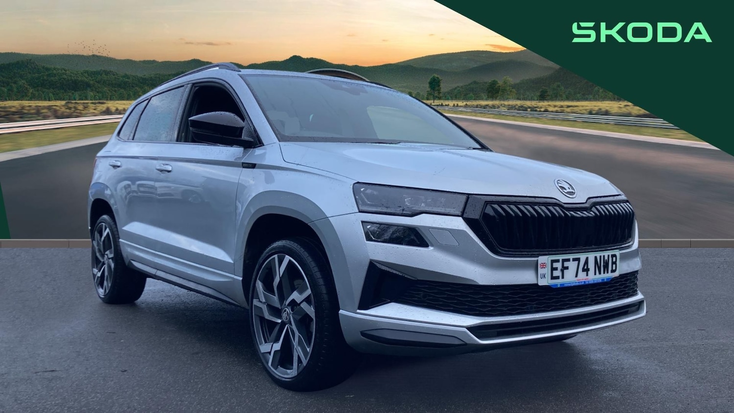 ChesterfieldInsurance Group 20, 0 Previous Owners, 0, Franchise Approved, The 2025 koda Karoq Estate 1.5 TSI SportLine 5door DSG stakes its claim as a compact SUV that blends spirited performance with a premiumleaning specification and familyfriendly practicality: its 1.5litre turbocharged petrol engine delivers around 150 PS and 250 Nm coupled to a smooth sevenspeed DSG automatic for brisk acceleration (062 mph in roughly 9.0 seconds) and a combined fuel economy of around 4445 mpg, all while offering the everyday usability youd expect from a koda.Visually, the SportLine model is distinguished by athletic styling enhancements including blackaccent trims, a panoramic sunroof and LED Matrix headlights which give it a more dynamic presence on the road compared with more conventional trims.Inside, the wellappointed cabin boasts modern tech such as a 10.25&8243, Virtual Cockpit digital display, a 9.2&8243, infotainment system with navigation, wireless smartphone charging and adaptive cruise control, while practical touches like ISOFIX, ample boot space (&8776, 521 litres expanding to 1,630 litres) and advanced driverassistance systems (Front Assist, lanekeep assist, trafficsign recognition) ensure comfort, connectivity and confidence for both daily commutes and longer journeys..Climate Control, Metallic Paint, Cruise Control, Satellite Navigation, Alloy Wheels, DAB Radio, Bluetooth, Panoramic Roof, Parking Sensors, USB, Manufacturer Approved, Sun Roof& AppleAndroid Play, Black floor carpet, Textile floor mats, Privacy glass, Heated rear windscreen, Acoustic glass, Aero front windscreen wipers with intermittent function, Electric front and rear windows with child proof lock, Black electric window control buttons, Hill hold control, Emergency rear braking signal, Electronic parking brake with auto hold function, ESC (incl. ABS+MSR+ASR+EDS+HBA+DSR+RBS+MKB), Wireless smartphone charging, Rear window wiper with washer system and intermittent control, Sensor for driver assistance systems, Virtual pedal with electrically operated boot door, Start/stop system with regenerative braking, Emergency services call system, Outside temperature gauge, Service interval indicator, USB C Port x 2 in front centre console, Quote Ref: 518272
