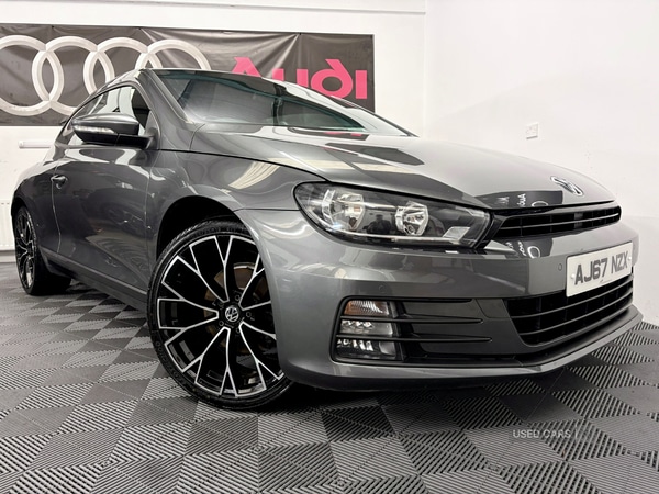 Ballynahinch. SEPT 2017(2018 MDL) VOLKSWAGEN SCIROCCO 1.4 TSI BLUEMOTION TECH GT BLACK EDITION STYLING * NI REG NO BREXIT TAX *Absolutely Stunning Example Of This Sought After Model In Indium Grey Metallic With Half Black Leather & Charcoal Designo Interior,Boasting A Massive Spec List To Include :,Flat Bottom Multi Function Steering Wheel,Sat Nav,VW Connect Package,VW Comms Bluetooth With Voice Command,Wireless Bluetooth Media With Music Interface,DAB Digital Radio,Smart Phone Interface,Safety Pack Isofix ,Cubed Aluminium Dash Inlay,Driver Info System,Automatic Headlight Activation,Daytime Running,Heated Door Mirrors,Auto Rain Sensitive Wipers,Front & Rear Parking Sensors With LCD DisplayRear Sun Protection Glass,18in VW Turbine Alloy Wheels In Gloss Black Or Upgrade To New 19in GTI Style Alloy Wheels & Tyres For Only £695(as illustrated in pics),Only 3xPrevious Professional Owners From New With Full VW & Specialist Service History Including Timing Belt & Waterpump,Totally Excellent Condition Throughout, Any Inspection Welcome.**** ALL MAKES OF PART EXCHANGE WELCOME *****Whilst every effort has been made to ensure the accuracy of the above vehicles information errors may still occur. Please check with a salesperson.****************************************************************************************Prestige Marques have a dedicated team of finance experts waiting to help with your enquiryWe have relationships with high street lenders and specialist motoring finance houses too, that is why we have helped hundreds of customers secure the best finance deal for their budget on hire purchase or PCP.Feel free to give us a call to discuss a tailored package for you.***************************************************************************************FOR MORE PICS & INFO PLEASE VISIT OUR WEBSITE :WWW.PRESTIGEMARQUES.NET**** VIEWING STRICTLY BY APPOINTMENT ONLY PLEASE ****