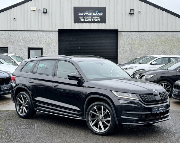 Strabane1 Previous Owner, July 2019 Skoda Kodiaq Sportline 2.0 TDi 4x4 DSG 7 Seater2019 Skoda Kodiaq Sportline 7 seater Finance available with zero depositTrade in welcome85k miles21" Alloy wheels (optional £1000 extra)Heated seatsSat NavParking sensorsReversing cameraFully serviced, checked over and ready to go with MOTFull Walk around Video Available On RequestNationwide warranty includedDelivery AvailableDevineCars.co.ukCall Christopher on 07892862743Call Darren on 07875070878