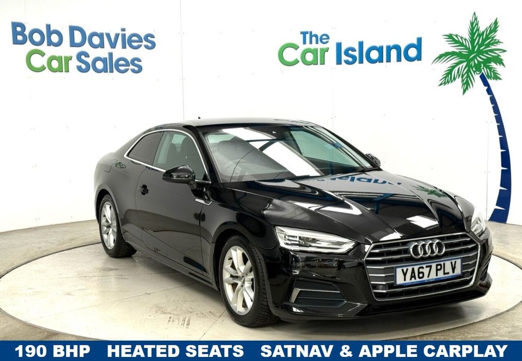 2 Previous Owners, Stunning Mythos Black Metallic A5 190BHP with Satellite Navigation, CARPLAY, Full Rock Grey Leather Trim & Heated Seats, Parking Aids Front and Rear, Privacy Glass & Twin Spoke Alloy Wheels, Bluetooth, Cruise Control & Climate Control, DAB Radio to list a few. Great Service History, 2 Keys & 6 Month Warranty to list a few..***** Bob Davies Car Sales is established as a trusted supplier of quality cars. Family business providing low mileage cars for over 40 years. High standards, great reputation & 5star customer service. Open 6 days. Best value in 100 mile radius. *** Request a personal walk round on any car and well make sure youre happy before reserving, travelling or delivery. No pressure, no fuss, no fees. Secure with £100 refundable deposit.***** We deliver all over the UK to your door with our successful "Mouse to House" delivery. Wherever you live, we will bring your perfect car to you. Feel confident in the quality and condition of our vehicles, our warranty covers the UK.***** Best Rate Finance available to all, even for poor credit. No deposit needed just contact us and we will tailor to suit you. P/X Welcome " Quality Cars at Sensible Prices". Satellite Navigation Pack & Good SH, Rock Grey Leather Heated Sport Seats , Parking System Plus Full Sensors, 17in Alloy Wheels 5TwinSpoke Design, Cruise Control with Speed Limiter, Privacy Glass, Mythos Black Metallic, Twin LeatherLeatherette Sport Seats Rock Grey, Satellite Navigation Pack , Bluetooth Interface, Parking System Plus, Audi Smartphone Interface CARPLAY, Audi Sound System, 4Way Electric Lumbar Support, 2 x USB Charging Ports and 1 x AUXIN, 17in Alloy Wheels 5TwinSpoke Design, ISOFIX Child Seat Mounting and Top Tether, Light and Rain Sensor, CD Drive, DAB Digital Radio Reception, Door Mirrors Electrically Adjustable and Heated with Builtin LED Indicators, Cruise Control with Speed Limiter, Deluxe 3Zone Electronic Climate Control, Electrically Adjustable Front Seats, Heated Front Seats, Tow Bar Preparation, AutoDimming RearView Mirror, Xenon Headlights with LED Daytime Running Lights, Comfort Dynamic Suspension