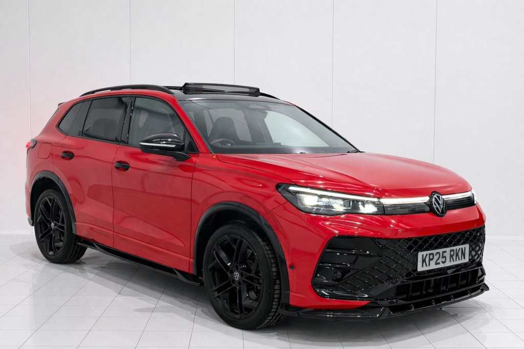 South Wigston0 Previous Owners, JUST INTO STOCK IS THIS STUNNING VOLKSWAGEN TIGUAN 2.0 RLINE FINISHED TO AN EXTREMELY HIGH SPECIFICATION, SOME OF WHICH INCLUDES THE FOLLOWING 2.0L DIESEL ENGINE 150BHP AUTOMATIC GEARBOX PANORAMIC SUNROOF MASSAGE SEATS HEATED SEATS REVERSE CAMERA MAXTON DESIGN BODYKIT VW WARRANTY R LINE BUCKET SEATS INTERIOR LIGHTING UPGRADED ALLOYS IQ LIGHTS VEHICLE HAS JUST BEEN WRAPPED IN GUARDS RED, UNDER THE WRAP IS BLACK PLUS LOADS MORE .IQ Light HD Matrix Headlights, Driving Dynamics Package with Adaptive Chassis Control, Persimmon Red, Grenadilla Black, Driver Assistance Package, Leather Package Incl Active Climate Seats with Massage Feature in Front, Winter Pack Heated Outer Rear Seats, Tool Kit and Jack, Tilting and Sliding Panoramic Sunroof with Rear Panoramic Sunroof, Spare Wheel Space Saver, Black Style Package, 20in Alloy Wheels York 8.5J X 20 Black Style, 12.9in Infotainment Display, 12V Outlet in Front, 12V Power Outlet on the Rear Centre Console, 12V Socket in Centre Console, 20in Alloy Wheels Leeds 8.5J x 20 BlackGrey Diamond Turned, 3Point Seatbelts in Front with Seatbelt Pretensioners, 3D LED Rear Combination Lamps Special Signal Pattern, ACC Adaptive Cruise Control, Advanced Driver Attention and Drowsiness Monitor, Alarm with Interior Protection, Ambient Lighting with 30 Colour Options, Ambient Lighting with Logo Projection, Automatic Dimming Rear View Mirror, Automatic Headlight Control with LED Separate Daytime Running Lights and Coming HomeLeaving Home Feature, Bluetooth Mobile Phone Interface, BodyColoured Door Mirrors and Handles, Brushed Stainless Steel Pedals, Bumpers in RLine Sports Style Air Intake with Chrome Trim, Carpet Mats Front and Rear, Central Locking System Keyless Go, Centre Console with Illuminated Storage Compartment with Sliding Cover and Two Drinks Holders, Chrome Elements on the Mirror Switch and Power Window Switches Door Pulls Interior Door Handle in Matte Chrome, Chrome Mouldings on the Side Windows, Climatronic 3Zone with Air Conditioning Control Panel at the Rear, DAB Digital Radio Reception, Decorative Inserts, Digital Cockpit Pro 10.25in High Resolution Dash Display Screen with Customisable Menus and Information, Disc Brakes in Front, Disc Brakes in Rear, Door Sill Protectors, Door and Side Trim Panel with Leatherette Insert, Driver Profile Selection, Drivers Seat Manual Adjustment Seat Travel Height Backrest Angle Thigh Support Longitudinally Sliding, Drivers and Front Passengers Airbags with Front Passenger Airbag Deactivation Switch, Drivers and Passengers Safety Optimised Head Restraints, Dynamic Headlight Range Control with Dynamic Cornering Light, Dynamic Road Sign Display, ESim Card for Online Connectivity, Electronic Parking Brake with Auto Hold Function, Exterior Mirrors Aspherical on Driver Side Convex on Front Passenger Side, Flat Luggage Compartment Floor, Front Assist Autonomous Em