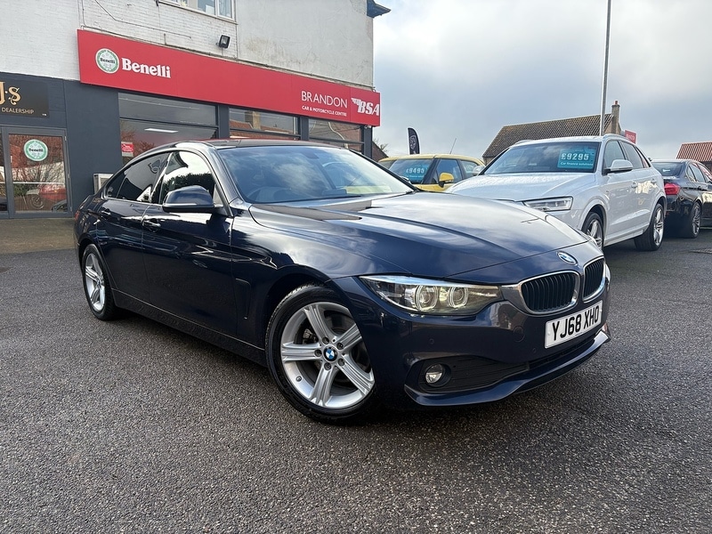 BrandonInsurance Group 31, 1 Previous Owner, 18/68 BMW 420D SE Grand Coupe Auto in Imperial Blue with 106872 Miles and FSH, Alloys, Climate Control, Cruise Control, Sat Nav, Parking Aid, Electric Windows, Remote Central Locking, Heated Seats, Bluetooth Phone Prep, USB, DAB Radio. Auto Lights and Wipers. 6 months warranty £10495.Dakota Leather Black with Black Interior,Imperial Blue Xirallic,Sun Protection Glazing, 12V Power Socket in Front Centre Console and Passenger Footwell, 6.5in Colour Display Screen, Access to BMW Connected Plus (12 Month Subscription From New), Bluetooth HandsFree Facility with USB Audio Interface and Audio Streaming, BMW ConnectedDrive Online Services, BMW Emergency Call, BMW Navigation System, BMW Professional Radio with Single CD Player with MP3 Playback Compatibility, BMW TeleServices, DAB Digital Radio, Media Package BMW Business, Real Time Traffic Information, Remote Services, Shark Fin, Brake Pad Wear Indicator Front and Rear, Condition Based Service, Cruise Control with Brake Function, Drive Performance Control with ECO PRO Comfort and Sport Modes, iDrive Controller 8 Favourite Buttons, OBC OnBoard Computer, Oil Sensor For Level and Grade Warning by Check Control System, Optimum Shift Indicator, PDC Park Distance Control Front and Rear, Tyre Pressure Monitor with a ThreeLevel Warning Strategy, 17in Alloy Wheels Star Spoke 393, Air Breather, Direction Indicator Side Repeaters Integrated in Exterior Mirrors, Direction Indicator Lenses LED, Electric Windows Front with OpenClose Fingertip Control AntiTrap Facility and Comfort Closing Function, Exhaust Tailpipe Dual Round Left with Chrome Finisher, Exterior Mirrors Heated Electrically Adjustable, Exterior Parts in Body Colour, Exterior Trim Matt Black, Heat Protection Glazing with Green Tint, Kidney Grille Chrome with Black Vertical Slats, Model Designation, Run Flat Tyres, Tyres Reduced Rolling Resistance, Windscreen Washer Jets Heated, Windscreen with Grey Shade Band, Check Control Warning System for Monitoring of Lights and DoorLuggage Compartment Open Warning, High Level Third Brake Light, LED Front Foglights, LED Headlights, LED Taillights with New 3D LShaped LED Light Design, LightsOn Warning by Audio Warning Signal When Ignition is Switched Off, Air Conditioning Automatic with TwoZone Control, Armrest Front Folding with Storage Compartment, Bottle Holders Integrated into Door Trim Storage Compartments Front Up to 1 litre, Central Locking Switch Doors Fuel Filler Cap Luggage Compartment, Centre Armrest For Rear Seats Include Two Cup Holders, Cup Holders Two in Front with Sliding Lid, Door Sill Finishers Front HighGloss Black with BMW Designation, Extended Lighting, Floor Mats Velour, Glove Compartment Opener with Chrome Trim, Handbrake Lever Gear Knob in Leather, Instrument Cluster, Interior Lighting Front Centre Over Interior Mirror with SoftLight and Rear Centre, Interior Trim Satin Silver, Luggage Compartment Lashing Eyes, Luggage Compartment Light, Non Smokers Package, Personal Profile, Rain Sensor with Automatic Headlight Activation, Rear Seat Headrests Two, Seat Heating for Driver and Front Passenger, Seats 6040 Split Folding Rear, Side Armrests Front and Rear Integrated into Door Trim, Sport MultiFunction Leather Steering Wheel ThreeSpoke, Standard Seat for Driver and Passenger with Manual Adjustment, StartStop Button with Comfort Go Keyless Engine Start and Auto StartStop Deactivation Button, Steering Column with Manual Reach and Rake Adjustment, Storage Compartment in Rear Centre Console, Sun Visors with Vanity Mirrors and Ticket Holder, Tailgate Operation Automatic, Toolkit Located in Luggage Compartment, Twin Horns, Welcome Light, Windscreen Wipers TwoSpeed with Adjustable Intervals, EPS Electric Power Steering, Rear Suspension FiveLink, Servotronic Steering, Suspension Front Aluminium, Airbags, Alarm System Thatcham 1 with Remote Control and Engine Immobiliser, Battery Safety Cut Off, Bumper System Front and Rear Replaceable Deformation Elements for Impacts Up to 9mph, Child Seat ISOFIX Attachment Rear with Passenger Airbag Deactivation, Crash Sensor, DSC Dynamic Stability Control Plus, Dynamic Brake Lights, First Aid