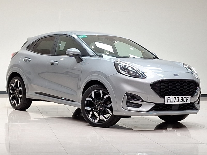 Insurance Group 12, Speed sign recognition, Rear parking sensor, Power start button, Power assist steering, Lane keeping aid with lane departure warning, Full digital 12.3" instrument cluster, Automatic headlights with auto high beam, Automatic rain sensing wipers, LED daytime running lights, Power foldable heated door mirrors with puddle lamps, Quickclear heated windscreen, STLine body styling kit with unique grille and large body colour rear spoiler, Ford easy fuel, Sport suspension, Rear wiper, Privacy glass to side rear windows and tailgate glass, Sensico partial premium upholstery, STLine flat bottomed sensico leather steering wheel with leather handbrake and aluminium gear knob, Wireless charging pad with electronic air temperature control (EATC), B&O Premium Audio system + Ford SYNC 3 navigation pack Puma, Carbon look interior deco spears, Sensico partial premium Black with red stitching
