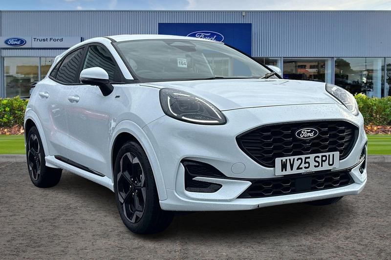 BristolInsurance Group 17, Driver impairment monitor, Emergency call service, Ford easy fuel, Full digital 12.8 instrument cluster, Lane keeping aid with lane departure warning, Power assist steering, Selectable drive modes(Normal, Eco, Sport, Slippery and Trail), Speed sign recognition, Automatic headlights with rain sensing wipers and auto high beam, Front fog lamps, LED daytime running lights, LED rear lamps, LED third brake light, Power foldable heated door mirrors with puddle lamps and puma logo protection, Quickclear heated windscreen, Rear privacy glass, Rear side wing doors, Rear wiper, STLine X body styling kit, 3 seat bench in 2nd row, 4 way lumbar support for passenger seat, Centre console with armrest and stowage, Electronic automatic temperature control (EATC), Ford megabox extended bootspace, Front and rear head restraints, Front floor mats, Manual 4 way driver seat adjust with lumbar adjustment, Single front passenger seat, STLine X Premium synthetic leather upholstery, 3 rear seatbelts, Child safety lock, Electronic stability control (ESC) and hill start assist, Precollision assist with autonomous emergency braking, pedestrian/cyclist detection & postcollision braking, Tyre pressure monitoring system (TPMS)