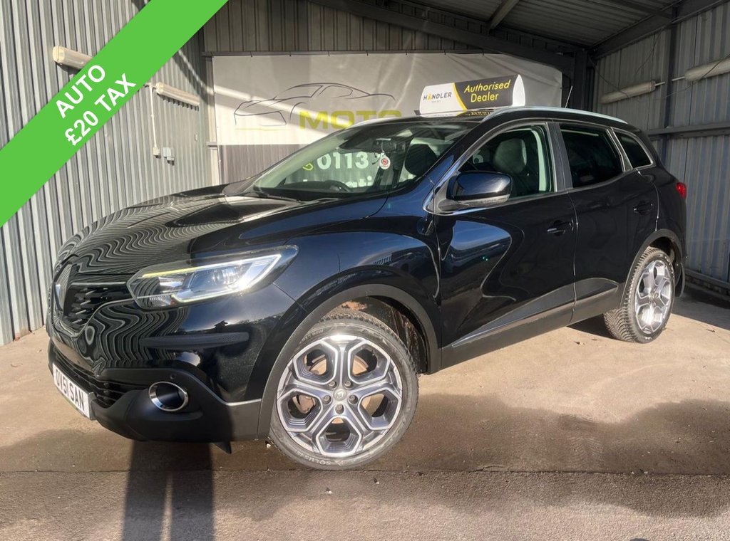 LeedsInsurance Group 14, 2 Previous Owners, Moto Vation Car Sales are offering this Automatic Renault Kadjar in a desirable colour Black with half Black Leather interior. Low miles for the age84K and with only 1 previous owner from new, it is clear it has been loved. Supplied with a long MOT until 10/11/26 MOT and Service History attached last in our Service Centre in 02/26 along with evidence of the Timing Belt done! Many extras include a Multi Functional Steering Wheel, 19" Alloys, AUX, USB, Bluetooth, Parking Sensors, Auto Headlights, Keyless Entry, Keyless Go, Apple Car Play, Android Auto, Voice Control, Cruise Control, Isofix, Sat Nav, Push Button Start and Start Stop. Only £20 annual tax! Please confirm with a Sales Executive how many keys this car comes with. All of our vehicles come with a 3 months Nationwide warranty and a 12 months basic AA breakdown cover. Please read our reviews! Please note the above vehicle specification is confirmed and correct. The vehicle specification listed elsewhere may sometimes be inaccurate so please check with the Sales team when enquiring to clarify this prior to purchase. OVER 100 OTHER CARS IN STOCK, PLEASE CHECK OUR WEBSITE www.motovationleeds.co.uk GREAT FINANCE PACKAGES AVAILABLE, DRIVE AWAY INSURANCE AVAILABLE ON CARS 10 YEARS AND YOUNGER, HPI CLEAR! £200 SECURES ANY VEHICLE! NATIONWIDE DELIVERY SERVICE AVAILABLE! WARRANTIES AVAILABLE. APPOINTMENTS AVAILABLE TO TEST DRIVE 7 DAYS A WEEK IF YOU HAVE ANY QUESTIONS ......WE WILL BE HAPPY TO HELP.. MOB.07540256895. ,.Phone deposits accepted, Low Miles, Auto, £20 Tax , Secure your car today, 11/26 Mot, Fresh Service, Sat Nav, 12 Months AA Breakdown Cover, 19in Alloy Wheels Diamond Cut Apollo, 3 Point Inertia Reel Seatbelts, ABS with EBD Electronic Brake Distribution and Emergency Brake Assist, Accessory Power Point, Adjustable Dashboard Illumination, Air Recirculation, Airbags Drivers Two Stage Auto Adaptive, Airbags Front Lateral, Airbags Front Passenger Deactivation, Airbags Front Passengers Two Stage Adaptive, Airbags Front and Rear Curtain, Android Auto, AntiDrill Door Locks and Ignition Barrel, Apple CarPlay, Arkamys 3D Sound 4x35W DAB Radio with Bluetooth and USB Connection, Armrest Front Centre, Assisted Parking Brake, Automatic Headlights and Windscreen Wipers, Body Sided Moulding with Chrome Insert, Chrome Detailing, Chrome Window Surrounds, Climate Control Automatic Dual Zone, Climate Pack, Convenience Pack, Courtesy Lights Rear, Cruise Control with Speed Limiter, DaylightNightlight Rearview Mirror, Daytime Running Lights LED, Display Digital Speedometer 7in TFT Screen, Door Handles Body Coloured Front, Door Mirrors Body Coloured Shell, Door Mirrors Electrically Operated Heated Folding, DoorBoot Open Warning Light, Driver and Passenger Seat Belt Undone Warning Audible Alert, Dust Protection Kit, ESP Electronic Stability Programme with ASR AntiSkid Regulation and UCL Understeer Logic Control, Eco Mode, Electric Windows Front, Electric Windows Rear, Electronic Parking Brake, Exterior Temperature Sensor, Extra Tinted Windows Rear and Tailgate, Fingertip Audio System Remote Control, Fleet Management, Fog Lights with Cornering Function, Front and Rear Towing Rings, Full Flat Floor, Glovebox Light, Gravel Protection Kit, HSA Hill Start Assist, Headlights Halogen, Headrests Front Fully Adjustable, Headrests Rear Height Adjustable x3, Heated Rear Windscreen, Heating Ducts to Feet of Rear Passengers, Height Adjustable Front Seat Belts, ISOFIX Child Seat Fixing Points Outer Rear Seats, Indicators with Side Repetitions, Insurance Approved Category 1 Alarm System and Immobiliser, Integrated Fuel Filler Cap, Interior Courtesy Light Controlled By All 4 Doors, Keycard Hands Free, Low Fuel Level Warning Light, Luggage Compartment Illumination, Multi Position Trunk Floor, Oil Level Gauge, Parking Sensors Front and Rear, Passenger Height Adjustment Seat, Pollen Filter, Power Assisted Steerin