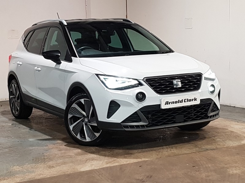 EdinburghFull Link Smartphone Integration with Mirror Link, Apple Car Play, Google Android Auto with USB Type C cable for Apple and Android compatibility, SEAT Drive profile Four different models normalsportecoindividual, steering response, throttle response and gear shifts mode, Seat connect with safety, service, remote and online, Rear parking sensor, Lane keeping system, Electric speed sensitive power steering, Digital cockpit, Bluetooth interface for hands free and audio streaming, Steering wheel mounted audio controls, Automatic activation of hazard warning lights, Chrome roof rails and window surrounds, FULL LED automatic headlights with dynamic headlight range control, coming and leaving home, LED daytime running lights, Rain sensing wipers, Rear spoiler, Windshield wiper with intermittent control and potentiometer, 60/40 split folding rear seat, Aircare filter, Dual zone climate control, Front sport seats, Heated front seats, Height adjustable front seats, Height/reach adjustable steering column, ISOFIX points in outer rear seats with top tether anchorage points, Steering wheel mounted gearshift paddles, Connectivity pack plus Arona, Interior chrome pack Arona, 18" Performance Cosmo grey matt alloy wheels
