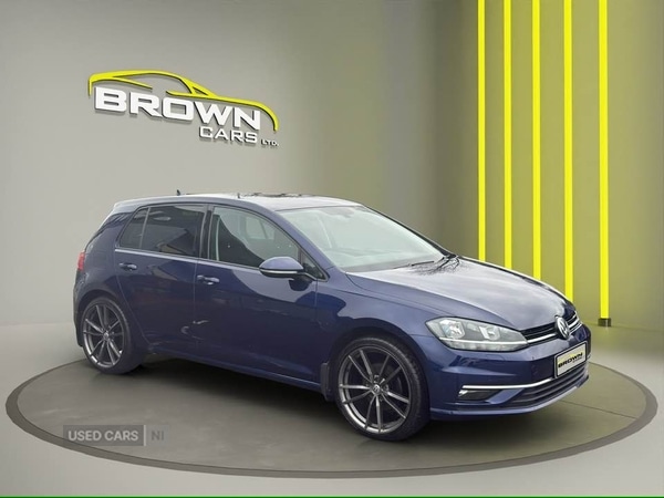 NewryInsurance Group 13, 1 Previous Owner, 2019 Volkswagen Golf 1.6 TDI Blue With Cloth Seats61,000 MilesAutomatic headlightsMultifunction steering wheelCruise controlSat NavElectric front windowsElectrically adjustable and heated door mirrorsRemote central lockingNew alloys (optional extra)Low deposit option also availableAll Finance packages can be adjusted to suit your budget..Immaculate Car Both Inside and Out.£11,995.Alan 07511310707 or 07907561671.
