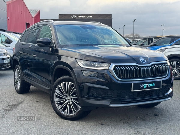 Eglinton1 Previous Owner, This 2022 Skoda Kodiaq TSI SE L Executive boasts a full dealership service history, offering peace of mind for its next owner. This seven seat, four wheel drive SUV is powered by a 2.0 litre petrol engine and meets Euro 6 emissions standards. It comes with a 12 month warranty for added security.Experience effortless convenience with the KESSY keyless entry and start system, allowing you to unlock and drive away without reaching for your keys. The electrically adjustable driver's seat includes a memory function, perfect for multiple drivers, while heated front seats ensure comfort on colder days. Stay connected and entertained with SmartLink, compatible with both Android Auto and Apple CarPlay, and keep your devices powered up with the integrated wireless charging pad. This Kodiaq accelerates from 0 to 60mph in a brisk 7.5 seconds, demonstrating its responsive performance compared to similar vehicles.
