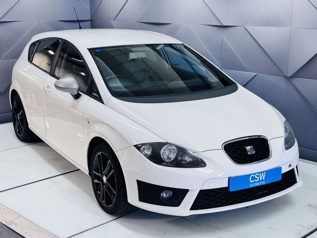 StaffordThis 2010 SEAT Leon TDI FR offers a compelling blend of performance and efficiency, making it a standout choice for those seeking a dynamic driving experience. Powered by a robust 2.0 litre diesel engine, this FR trim model delivers an impressive 060mph acceleration in just 8.2 seconds, showcasing its sporty capabilities. The SEAT Leon TDI FR is designed to impress with its engaging driving dynamics and practical diesel engine. Its brisk acceleration means it offers a more spirited performance compared to many other vehicles in its class. This particular model, registered in 2010, represents a well rounded package for any driver. REG MM10HWS.Candy White, Leather Black, 17in Albea Alloy Wheels, 17in Alloy Wheels, Convenience Pack