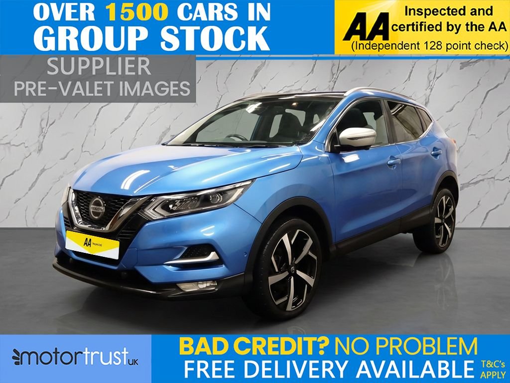 Insurance Group 19, 0 Previous Owners, This 2019 Nissan Qashqai dCi Tekna+ boasts exceptionally low mileage for its age, having covered just 11,000 miles, and has been owned by only one person. This Euro 6 compliant, four wheel drive model features a 1.7L diesel engine and comes with an MOT valid until October 2026, with a clear vehicle history check. The Tekna+ trim level includes the Smart Vision Pack with front and rear parking sensors, LED headlights, dual zone climate control air conditioning, intelligent auto headlights, and a fixed panoramic glass roof. The Qashqai Tekna+ offers a refined driving experience, enhanced by its comprehensive feature set which sets it apart from other vehicles. The inclusion of advanced parking assistance and intelligent lighting systems demonstrates a higher level of specification. Furthermore, its very low mileage and single owner history indicate a well cared for vehicle, suggesting it has been maintained to a superior standard compared to many others on the market. This model also benefits from a low insurance group, making it an economical choice. Part Exchange Welcome. All Majors Cards Accepted. We Have Finance Available. A Wide Range of Warranties. We Also Offer Low Cost, Nationwide Delivery Available From £1.50 a Mile. **Every endeavour is made to ensure specifications and descriptions are correct. Due to model changes specification may vary. Phone for details. MPG figures shown are government official figures.**.Vivid Blue, Nappa Leather with 3D Quilted Black, 19in Alloy Wheels, 3 Height Adjustable Rear Headrests, 6040 Split Rear Folding Seats, AMFMCD Audio System with DAB, AUX Socket for MP3 Player, Adaptive Front Lighting System, Advanced Drive Assist Display 5in TFT Coloured Screen, Ambient Lighting Centre Console, Auto Wipers, AutoHold Function Stand Still Assist, Bluetooth with Audio Streaming, Body Coloured Handles, Boot Light, Bose 8 Speaker Premium Audio System, Carbon Graphite Dash Trim, Centre Console Storage and Armrest, Chrome Glass Surround, Chrome Interior Door Handles, Cruise Control with Speed Limiter, Dark Headlining, Daytime Running Lights Dip Function When Turn Signal Applied, Driver Seat Height Adjustment, DriverPassengerSide and Curtain Airbags, Dual Zone Climate Control Air Conditioning, ESP ABS EBD and Brake Assist, Electric 4Way Lumbar Support on Driver Seat, Electric Heated AutoFolding Door Mirrors, Electric Parking Brake, Electric SpeedSensitive Power Steering, Electrically Adjustable Drivers Seat, Electrically Adjustable Passenger Seat, Front 12v Power Sockets x2, Front and Rear Door Pockets with Drink Holders, Front and Rear Electric Windows, Front and Rear Seat Belts with Load Limiter and Pretensioners, Front and Rear Seatbelt Warning, Glass Roof Pack, Gloss Silver Door Mirror Caps, Headlights Automatic Levelling, Headlights LED, Heat Pack, Height Adjustable Front Head Restraints, Height Adjustable Front Seatbelts, Hill Start Assist, ISOFIX Child Seat Anchoring Points Rear x2, Individual Rear Seat Reading Lights, Intelligent Around View Monitor, Intelligent Auto Headlight, Intelligent Park Assist, Interior Ambient Lighting, LED Pack, LED Turn Indicator on Door Mirrors, Leather D Shaped Steering Wheel, Leather Gear Lever, Leather Knee Pad, Luggage Board System, Matt Silver Roof Rails, Memory Function Drivers Seat and Door Mirrors, Monoform Front Seats with Plastic Backboard, Nissan Anti Theft System Immobiliser, Nissan Chassis Controls, Nissan Intelligent Key, One Touch 4 x Auto Windows with Illuminated Switches, Outside Temperature Sensor, Parcel Shelf Stow Function Under Luggage Board, Passenger Airbag Deactivation System, Passengers Seat with Manual Lumbar Support, Pollen Filter, ProPILOT, Puncture Repair Kit, Rear Roof Spoiler, Rear USB Port, Rear Wiper with Reverse Link, Remote Central Locking with Superlocking, Safety Shield Plus, Selectable Steering Normal or Sport, Smart Vision Pack, Smartphone App Integr