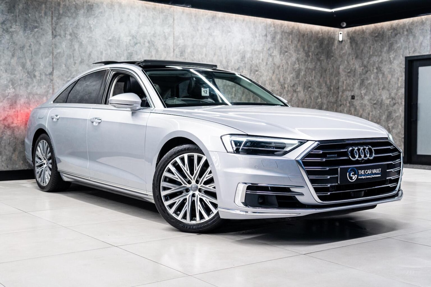 Oldham2 Previous Owners, We At The Car Vault Are Proud To Offer This Stunning AUDI A8 3.0 TDI V6 50 Tiptronic Quattro Euro 6 Finished In FLORET SILVER METALLIC PAINT This Vehicle Is a Well Maintained Example and Comes With a COMPREHENSIVE FULL SERVICE HISTORY and 2 ORIGINAL AUDI REMOTE KEYS It Comes With The Following OPTIONAL SPECIFICATION: Chrome Exterior Pack, Panoramic Glass Sunroof, HeadUp Display (HUD), Adaptive Air Suspension, LED Front and Rear Lights, HighBeam Assist, Audi Virtual Cockpit, 360 Surround and RearView Camera, Audi Parking System Plus, Audi PreSense Front, Advanced Key, Power Door Closure, Comfort and Sound Package, Bang and Olufsen Sound System, MMI Navigation Plus including MMI Touch, Audi Phone Box with Wireless Charging, Valcona Leather SeatsBlack, 22Way Electrically Adjustment Seats with Memory Function, Heated Front Seats, 4Way Electric Lumbar Support for Front Seats, Upper InlaysFine Grain AshNatural Grey Brown, LED Interior Lighting Pack, Twin Spoke Leather MultiFunction Steering Wheel with Shift Paddles, Door MirrorsElectrically AdjustableHeatedFoldingAutomatically Dimming with Memory Function and Integrated LED Indicator, Power Operated Tailgate, Acoustic Double Glazing, Privacy Glass, Tyre Pressure Monitoring System, Black Brake Calipers, 20in Alloy Wheels 10Spoke Y Design Forged, Panroof