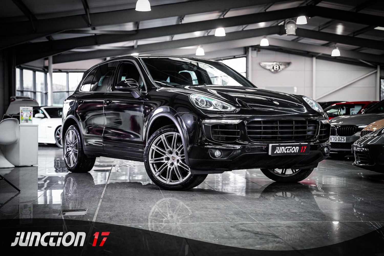 Rugby1 Previous Owner, *CLICK BUY COLLECT* FINANCE AVAILABLE! HPI CLEAR! Junction 17 Cars now have to offer a stunning example Porsche Cayenne 4.2 TD V8 S TiptronicS 4WD Euro 5 (s/s) 5dr... Outstanding Porsche main dealer service history...Finished in Jet Black Metallic with Monochrome black interior package (high gloss)... Huge specification such as Air suspension with (PASM)...21inch Cayenne SportEdition wheel with wheel arch extensions....Porsche Communication Management (PCM) with navigation module...BiXenon headlights incl. Porsche Dynamic Light System (PDLS)....Telephone module (SAP and HFP)...Digital radio...Privacy glass...Seat heating (front)...Automatically dimming exterior and interior mirrors....Comfort lighting package...